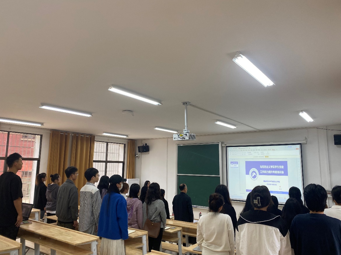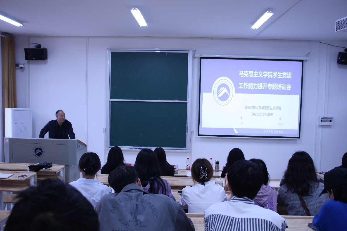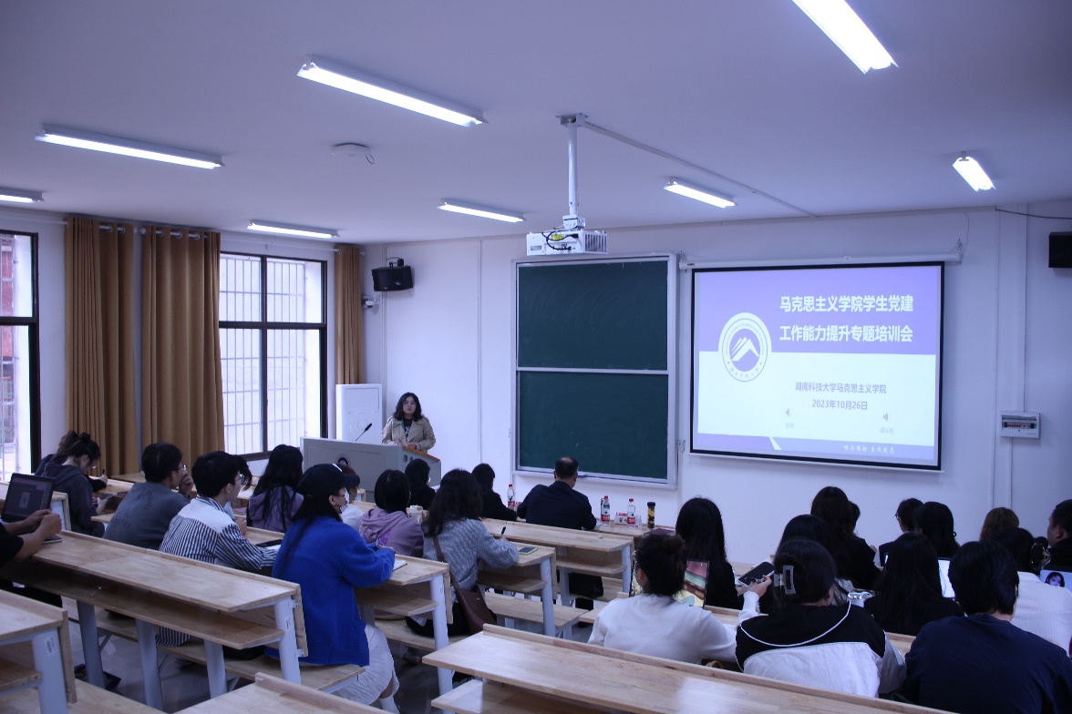 为提升学院新一届学生党建办和学生党支部的工作水平与业务能力,规范党建工作程序,促进我院党建工作高质量发展。10月26日,我院学生党建工作能力提升专题培训会在湖南科技大学昭潭书院二教101顺利举行。院党委副书记刘图其、组织员管桂翠、五个学生党支部全体支部委员以及学生党建办全体成员参加会议。会议由管桂翠主持。