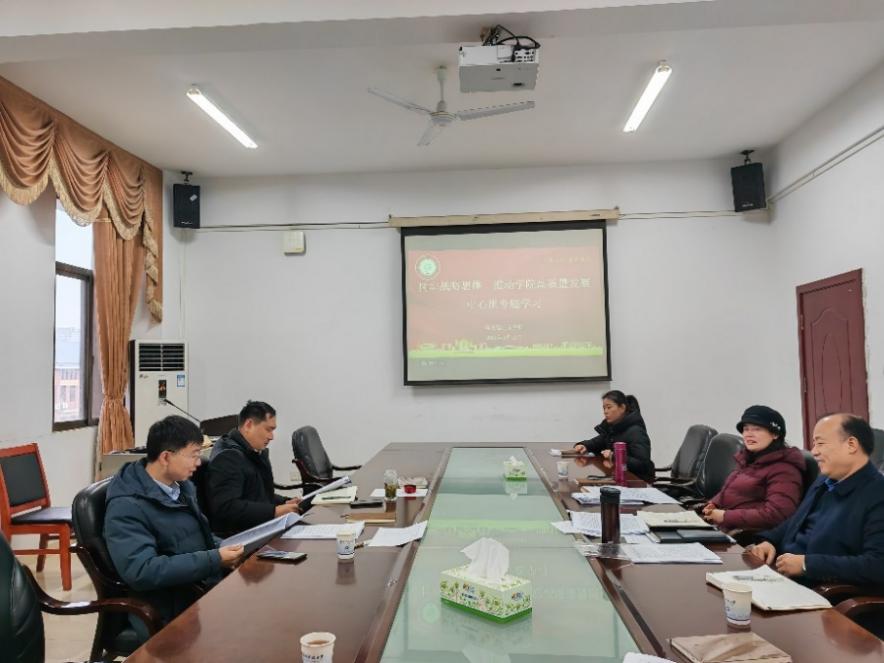 2024年1月19日,我院党委于立言楼A529开展“树牢战略思维、推动学院高质量发展”中心组专题学习,院领导班子全体成员参加学习,院党委书记刘正妙主持并领学。