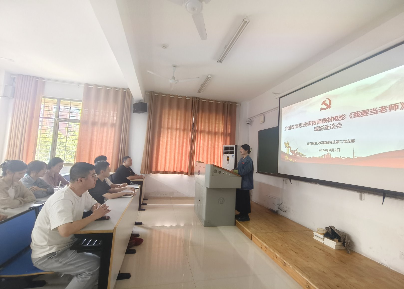 4月2日,我院研究生第二党支部在观看完全国首部思政课教师题材电影—《我要当老师》后,组织支部党员在立言楼召开了观影座谈会。会议由支部书记邹昕主持。