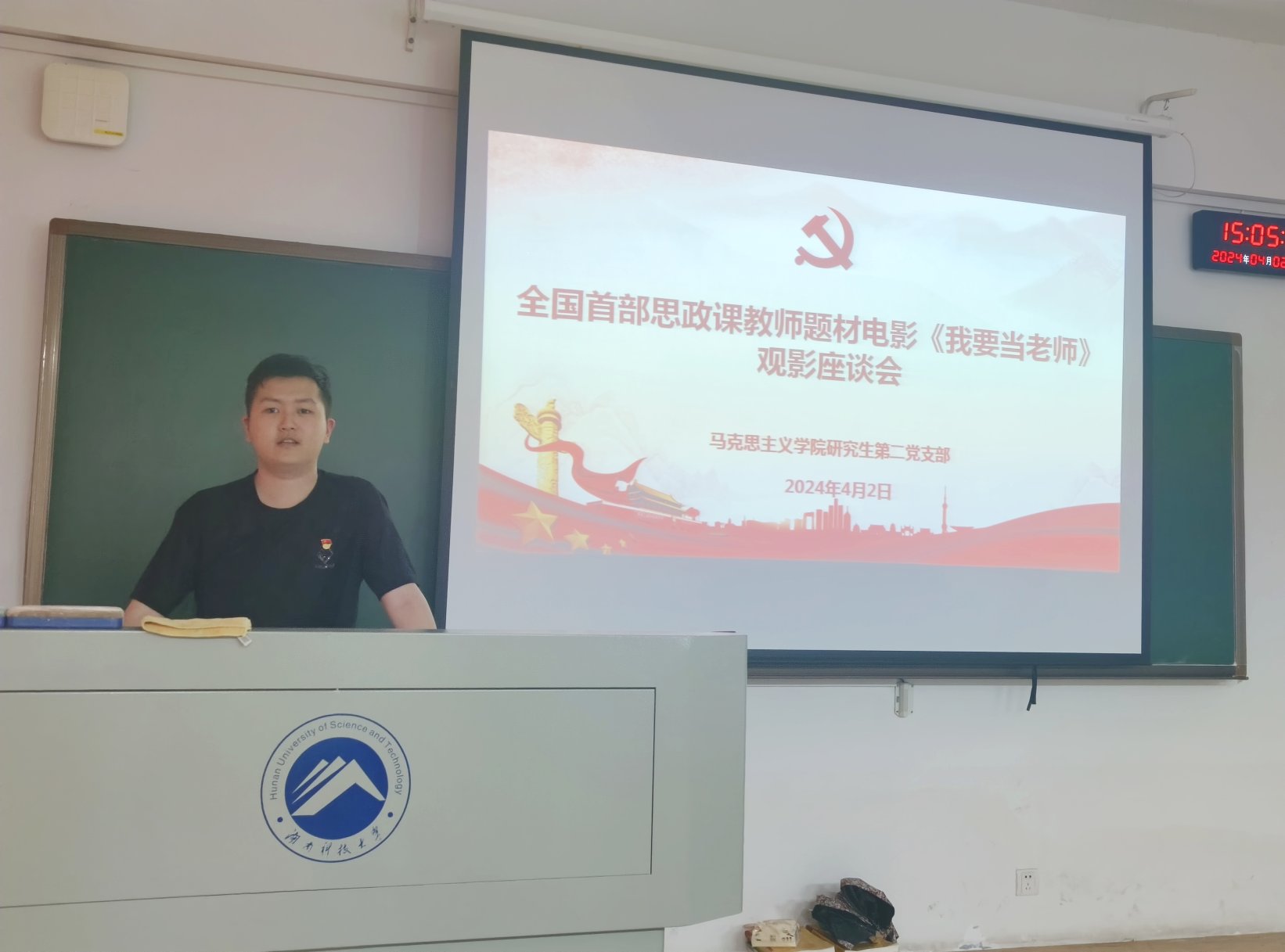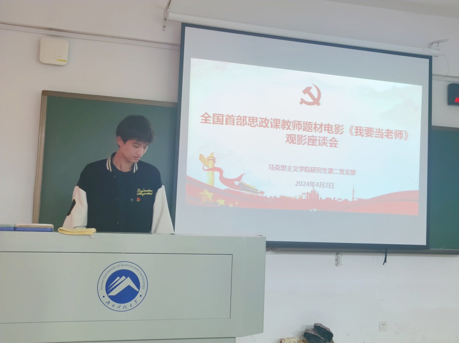 会上,邹昕表示《我要当老师》作为首部思政课教师题材电影,再现了一代代思政课教师“为党育人、为国育才”的初心使命和赤诚情怀。她说:“作为马克思主义理论专业的学生,特别是作为学生党员,将来如何当好一名思政课教师是大家应该思考的问题。”