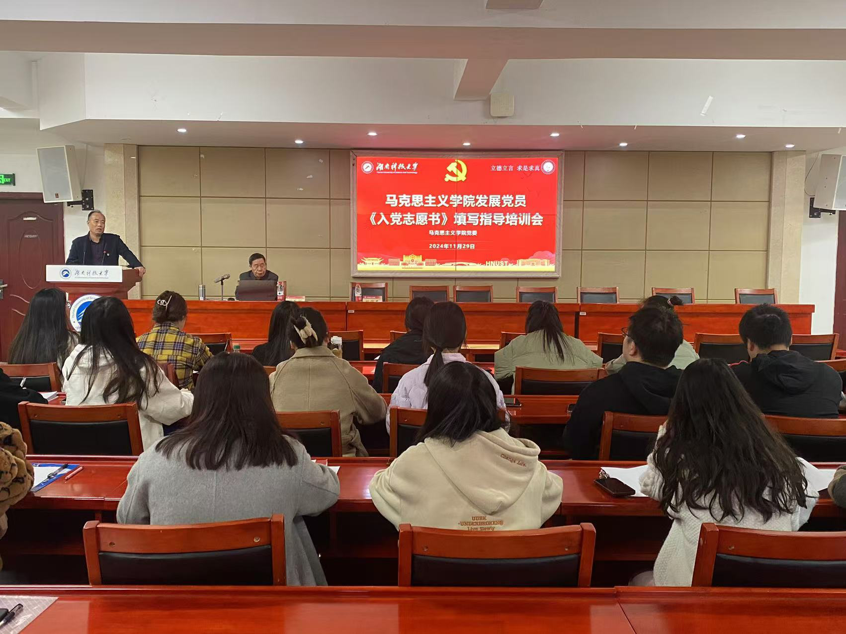 为规范我院党员发展程序,确保发展材料规范,切实做好发展对象培养工作,11月29日下午,我院于立言楼A5-1组织举办《入党志愿书》填写指导培训会。此次培训会由学校特邀党建组织员、原组织部部长刘龙洲教授主讲,院党委副书记刘图其主持。2024年下半年党员发展对象及学生党建办公室成员参加此次培训会。