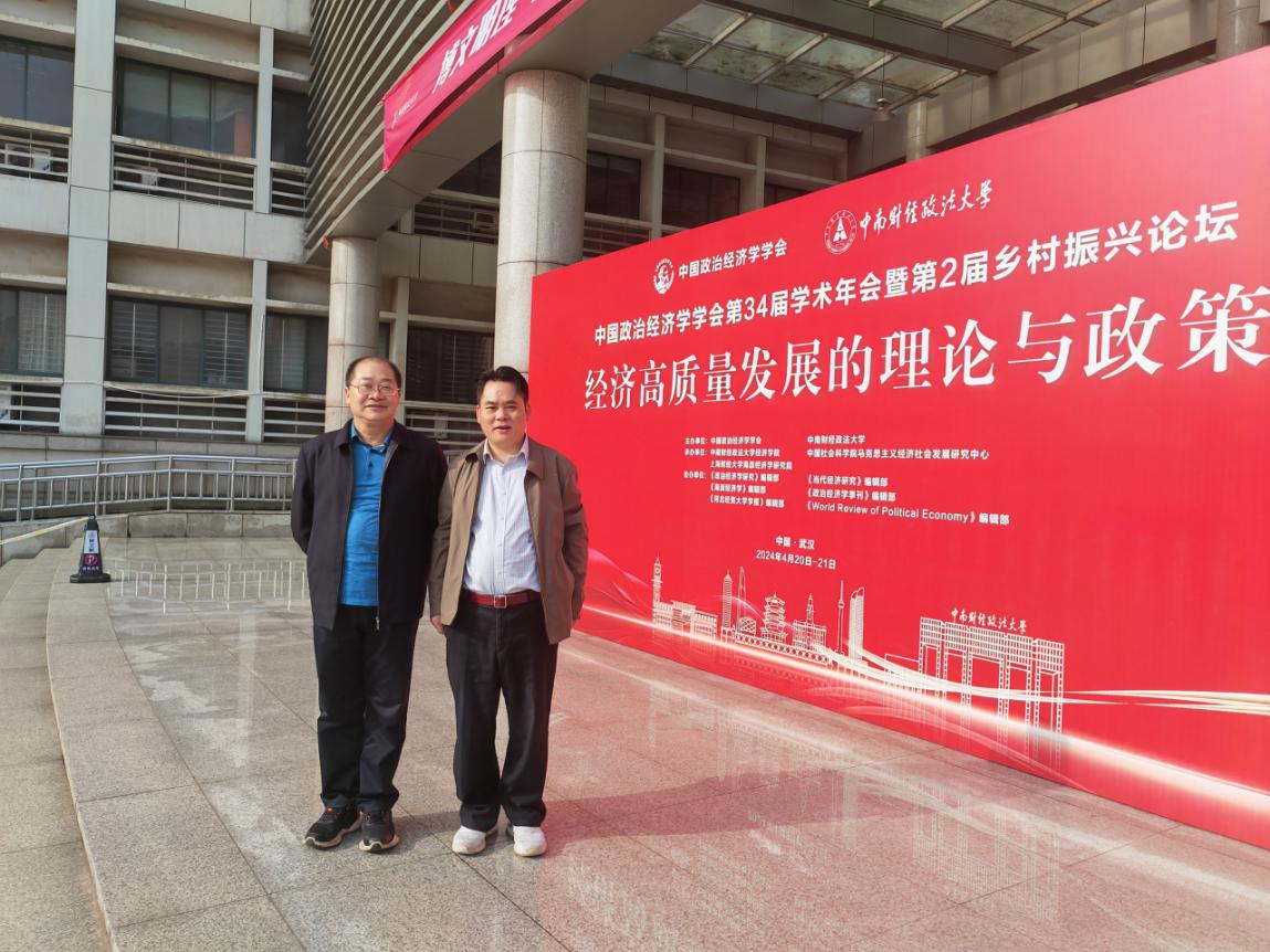2024年4月20-21日,由中国政治经济学学会主办,中南财经政法大学经济学院、中国社会科学院马克思主义经济社会发展中心、上海财经大学海派经济学研究院承办的中国政治经济学学会第34届学术年会暨第2届乡村振兴论坛在武汉市召开。著名马克思主义政治经济学专家程恩富教授,中国政治经济学学会会长侯为民教授,以及来自全国90多所高等院校和科研机构的320多名代表出席了大会。我院罗建文教授应邀参加了本次论坛。