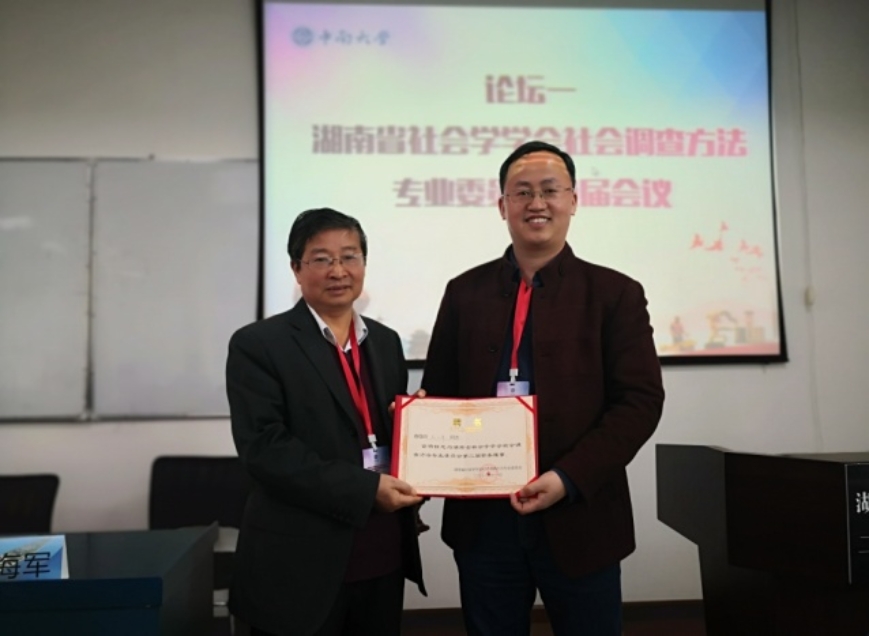 我院博士生导师陆自荣教授和毛小平教授参加了会议。省社会学学会副会长陆自荣教授在大会上就“湖南省社会学学术研究与学科发展”这一主题与同行专家学者进行了深入交流。在湖南省社会学学会社会调查方法专业委员会换届会议中,毛小平教授当选为湖南省社会学学会社会调查方法专业委员会第二届常务理事。