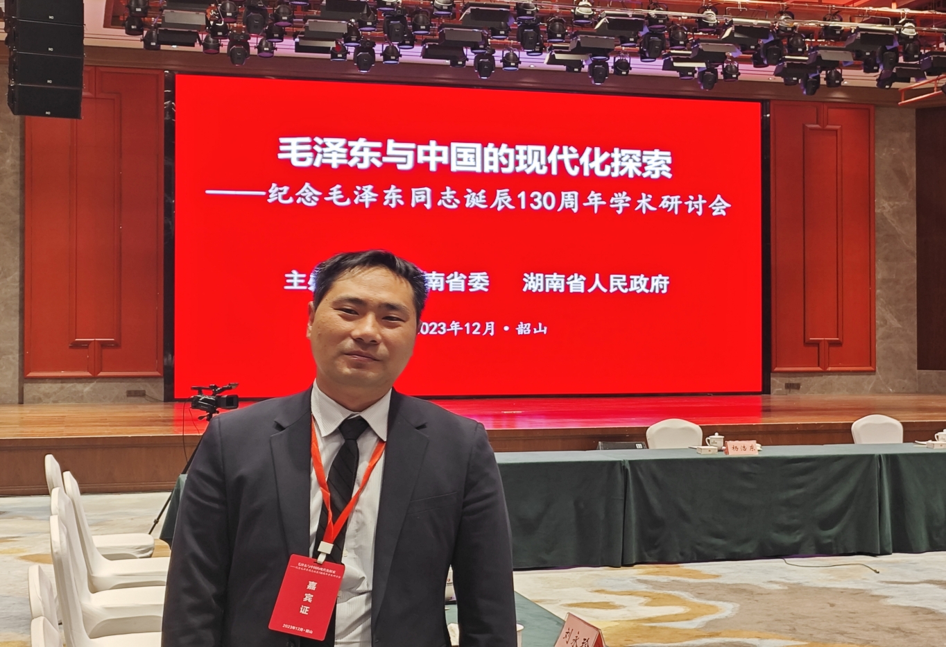 12月22日,由省委、省政府主办的“毛泽东与中国的现代化探索——纪念毛泽东同志诞辰130周年”学术研讨会在韶山举行。省委副书记李殿勋出席并讲话,全国人大外事委员会委员、中央党史和文献研究院原副院长柴方国作主旨发言。省委常委、省委宣传部部长杨浩东主持研讨会,中央党史和文献研究院、中国人民革命军事博物馆等单位特邀嘉宾以及省内社科理论界近百名专家学者出席。我院薛光远副院长应邀参加了本次研讨会。