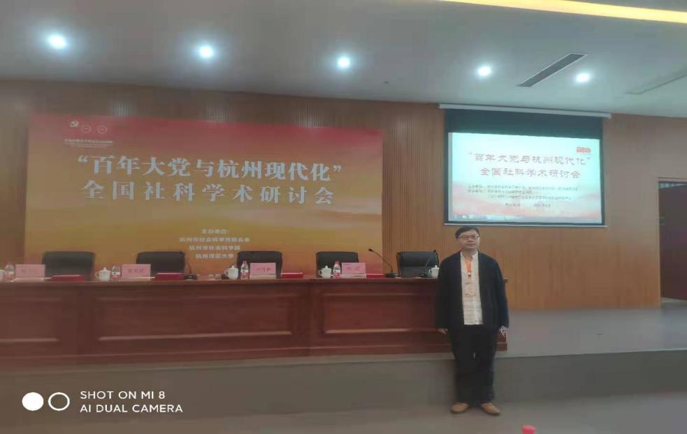 本次学术研讨会是征文入会,征文围绕庆祝中国共产党成立100周年、百年大党与杭州研究、杭州加快建设社会主义现代化国际大都市相关问题研究等三个选题展开。来自全国各地的一百余位专家学者参加这场学术盛会,以实际行动推进党史学习教育的不断深化。我院邓运山博士所提交的论文“伟大的抉择:从旧军队军官到真正的共产党员”获评研讨会优秀论文,并作会议主题发言,得到与会专家学者的好评。