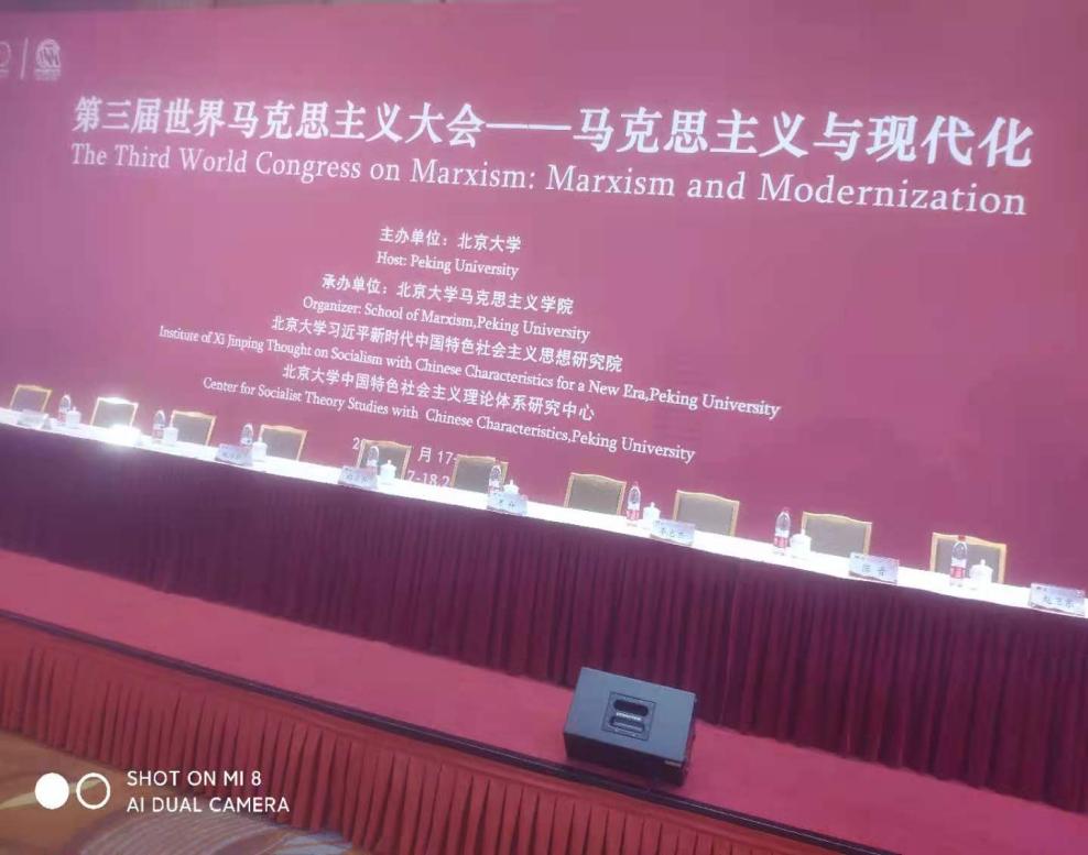 2021年7月17日上午,第三届世界马克思主义大会在北京大学英杰交流中心阳光厅开幕。北京大学党委书记邱水平,中共中央党校副校长李毅,中国社会科学院马克思主义研究院院长姜辉,北京市委宣传部常务副部长赵卫东出席并致辞。本届大会以“马克思主义与现代化”为主题,以线上和线下相结合的方式进行,来自世界五大洲的60多位国际学者和200多位中国学者与会。大会开幕式由北京大学副校长王博主持。