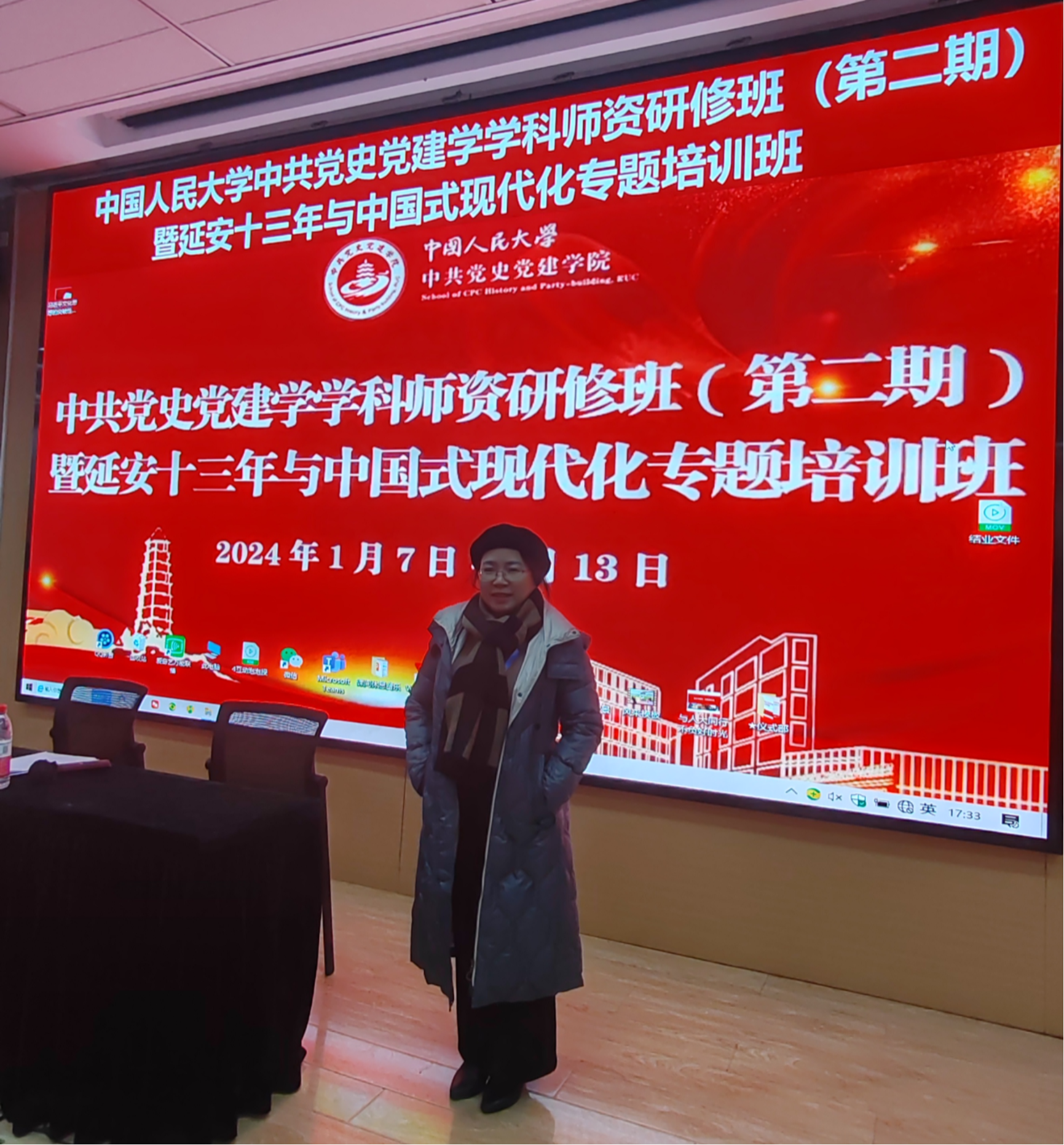 为进一步推进中共党史党建学一级学科高质量建设和延安十三年与中国式现代化研究走向深入,中共党史党建学科师资研修班(第二期)暨延安十三年与中国式现代化专题培训班于2024年1月7日至13日在中国人民大学逸夫会议中心顺利举办。此次培训由中国人民大学中共党史党建学院主办,中国人民大学党委副书记齐鹏飞出席开班仪式并做了重要讲话。来自全国各高校、党校和科研院所的从事中共党史党建学研究的近150位优秀师资参加。我院杨松菊教授参加了此次培训学习。