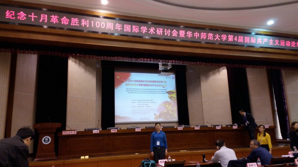为了隆重纪念十月革命胜利100周年,深入探讨“十月革命”的历史意义与当代价值,深化对当代世界社会主义与中国特色社会主义新发展理论与实践的研究,纪念十月革命胜利100周年暨华中师范大学第四届国际共产主义运动论坛于4月29日在华中师范大学举行。论坛由华中师范大学政治与国际关系学院国外马克思主义政党研究中心、《社会主义研究》编辑部、法国共产党加布里埃尔·佩里基金会联合举办。来自越南社会科学院、法国共产党加布里埃尔·佩里基金会、土耳其社会主义研究会、中国社科院、北京大学、中共中央对外联络部、中央党校、华中师范大学、中国人民大学等70余所(家)科研院校与单位的120余名专家学者与会。其中,我校永利yl23411邓运山博士也应邀参加了本次论坛,同时在会上作了专题发言,并与参会专家、学者进行了深入交流。