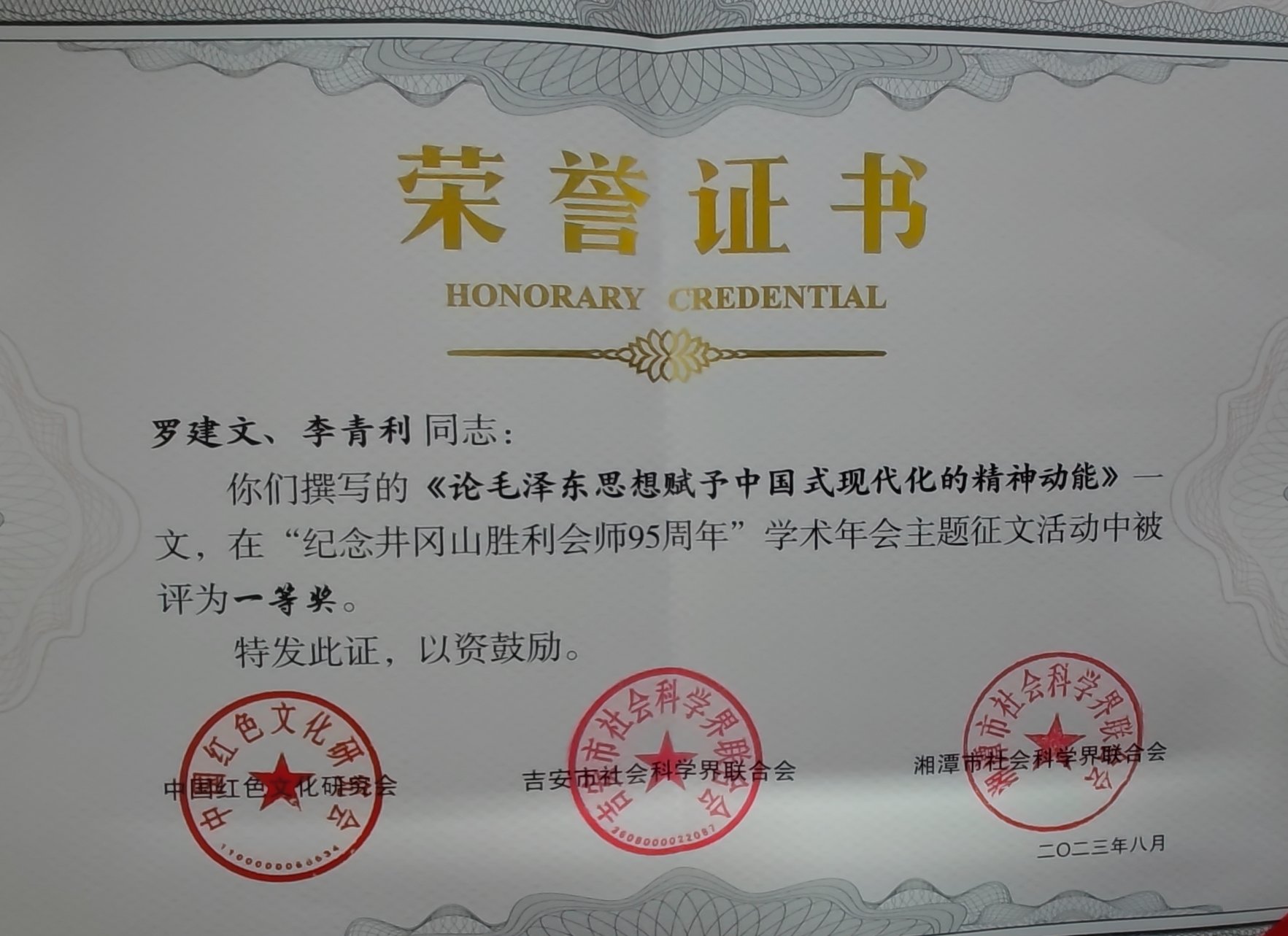 为深入研究井冈山会师对中华民族命运和中国发展走向产生的巨大而深远影响,纪念井冈山会师95周年和毛泽东同志诞辰130周年,深刻缅怀老一辈无产阶级革命家的丰功伟绩,弘扬跨越时空。本次年会得到了全国16个省份36所院校的专家学者积极响应支持,共收到学术论文108篇,评出了32篇优秀论文,会上还为获得本次学术论文一二三等奖的作者代表进行了颁奖。