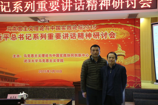 2015年1月10日,由武汉大学马克思主义理论与中国实践协同创新中心、永利yl23411共同主办了“习近平总书记系列重要讲话精神研讨会”在武汉大学召开。来自中共中央对外联络部、中共中央党史研究室、中国社会科学院、中共湖北省委宣传部、南开大学、中山大学、宁夏大学、贵州大学、华中科技大学及中国社会科学报、湖北日报等高校和研究机构的100余位代表与会。中共湖北省委常委、省委宣传部部长尹汉宁发表重要讲话。中共中央对外联络部研究室副主任孔根红、中国社会科学院当代中国研究所副所长武力、中共中央党史研究室宣教局副局长、《中共党史研究》杂志主编任贵祥、武汉大学党委副书记骆郁廷分别做《中国特色外交:应着力处理好十个重要关系》、《学习习近平系列讲话精神,正确认识经济发展的“新常态”》、《对习近平在纪念毛泽东诞辰120周年座谈会讲话的解读》、《中华优秀传统文化价值观的现代转化》的重点发言。我校永利yl23411李爱军博士应邀参加了这次研讨会。李爱军博士提交了以《资本逻辑视域下坚持和发展中国特色社会主义》为题的参会论文,产生了较好的影响。
