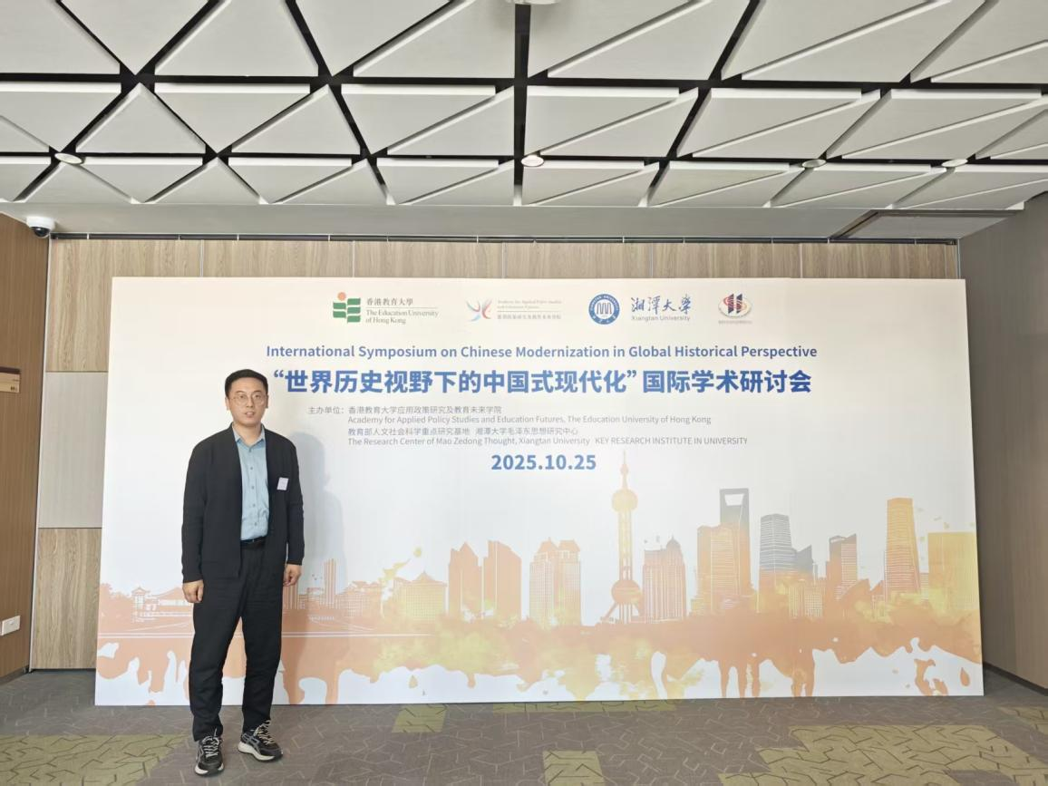 2025年10月24日至26日,由香港教育大学应用政策研究及教育未来学院、教育部人文社科重点研究基地湘潭大学毛泽东思想研究中心共同主办的“世界历史视野下的中国式现代化研究”国际学术研讨会在中国香港召开。来自北京大学、复旦大学、北京师范大学等全国10余所高校以及澳门大学、希腊伯罗奔尼撒大学、西班牙莱昂大学等海外高校的30余位学者参会。我院许浩博士应邀参加此次国际学术会议。