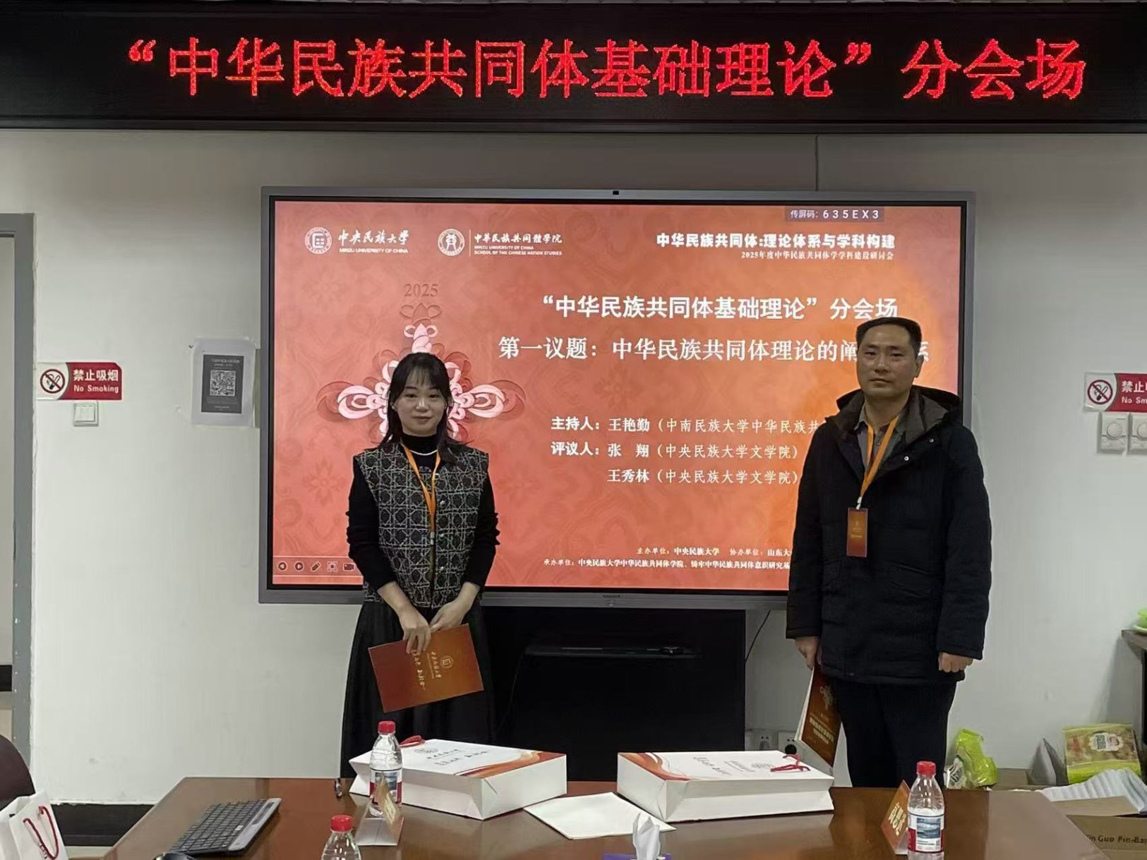 本次论坛共收到来稿论文764篇,经过严格外审,最终有63篇论文获得发言机会。曾思妍和薛光远共同撰写的《中华民族共同体:何以从本土叙事转向世界话语》成功入选,并由曾思妍在“中华民族共同体基础理论”分会场做了同题发言,获得与会专家学者的肯定和好评。