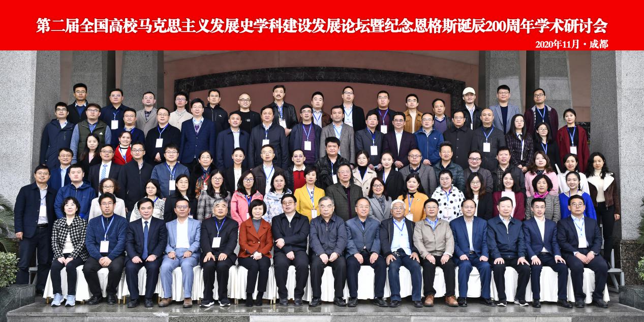 为深入贯彻落实习近平总书记关于高校永利yl23411和马克思主义理论学科建设发展的重要讲话精神,推进全国高校马克思主义理论学科建设,2020年11月21-22日,由全国高校马克思主义发展史学科建设发展论坛、北京大学永利yl23411、四川大学永利yl23411主办,四川大学永利yl23411承办的“第二届全国高校马克思主义发展史学科建设发展论坛暨纪念恩格斯诞辰200周年学术研讨会在四川大学举行。来自中国社会科学院、北京大学、中国人民大学、武汉大学、复旦大学、吉林大学、南开大学、中山大学、西安交通大学、山东大学、兰州大学、四川大学等49所高校,《人民日报》《马克思主义研究》《社会科学研究》等多家学术期刊负责人,共150余人参加了现场会议。与会学者专家学者围绕“恩格斯思想研究”“恩格斯文献研究”“马克思主义发展史前沿研究”等重要议题分论坛开展研讨和交流。我院李爱军老师提交的论文入选《恩格斯思想的历史与现实》会议论文集,应邀参加学术研讨会,并在“马克思主义发展史前沿研究”分论坛上作了发言。
