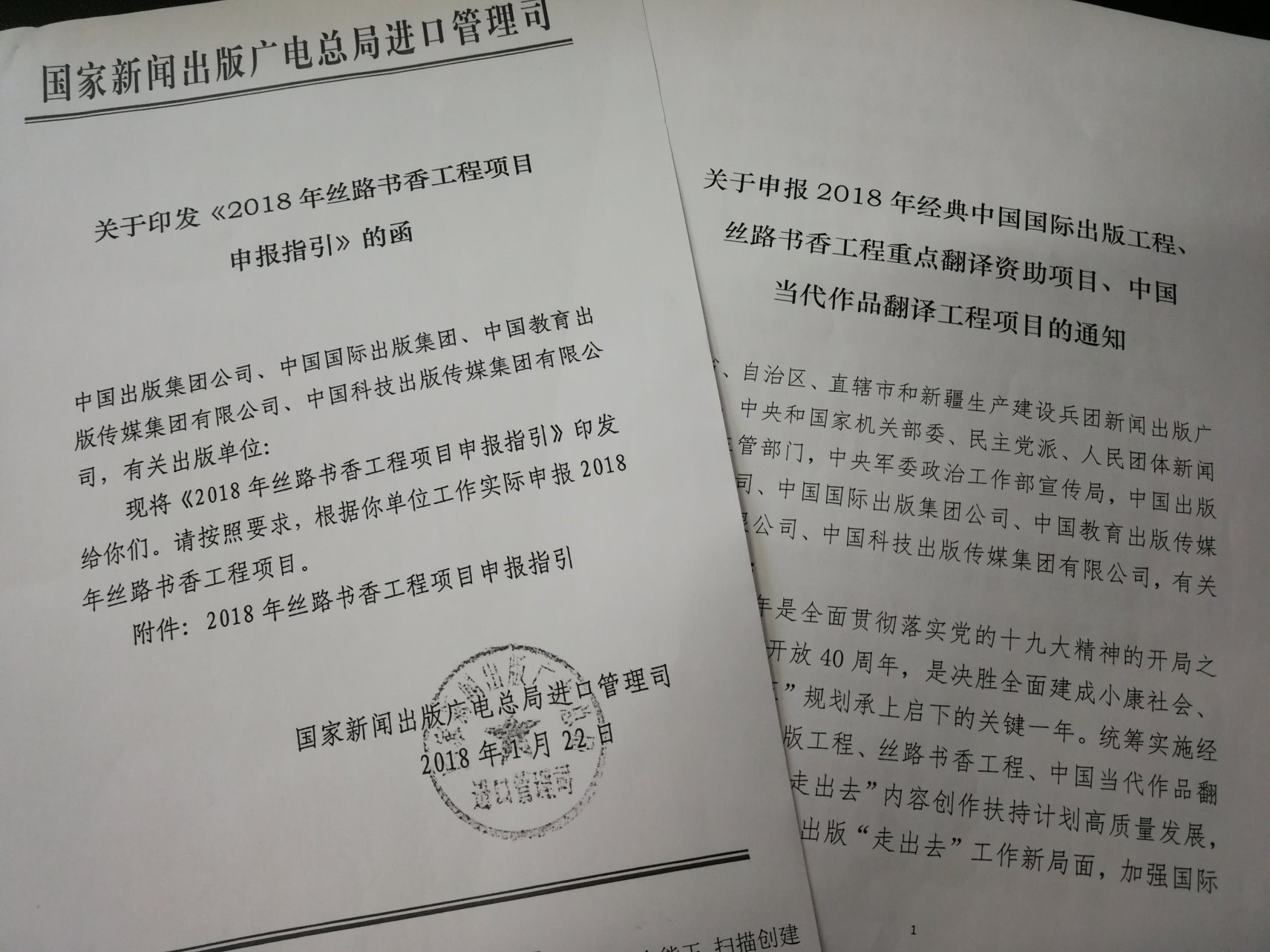 国家新闻出版广电总局关于申报丝路书香工程项目的文件