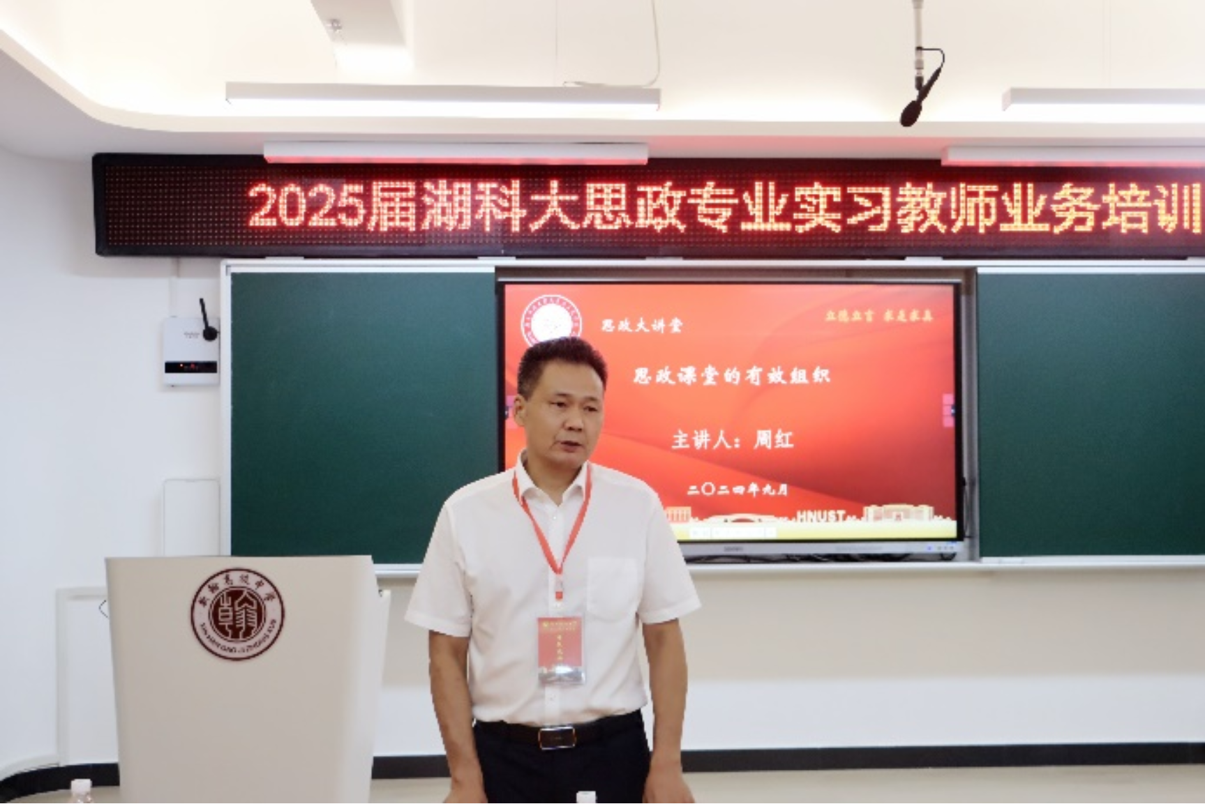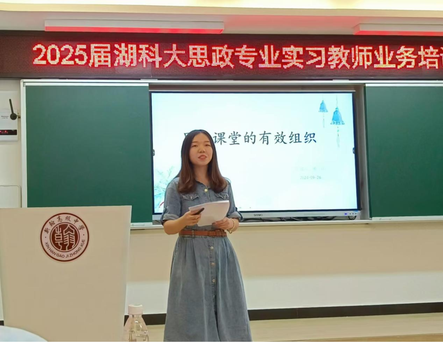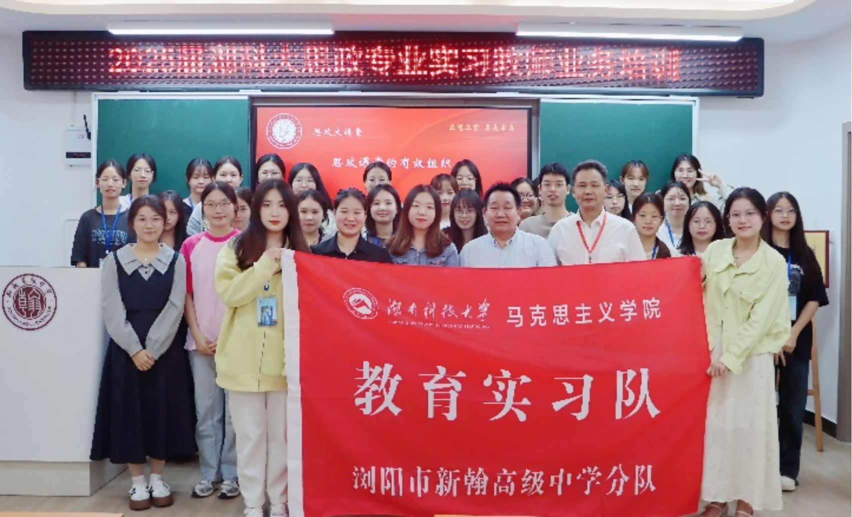 9月26日晚上,我院“思政大讲堂·第30期”在浏阳市新翰高级中学图书馆三楼商南花高中生涯规划室开讲。本期讲堂也是新翰高级中学举办的“2025届湖科大思政专业实习教师业务培训”系列活动之一。本次活动由我院2021级思想政治教育专业浏阳实习队带队老师吕开武主持,浏阳实习队全体成员、新翰高中政治教研组组长谭友源参加了此次活动。浏阳市新翰高级中学高二政治组组长周红老师从思政课堂的有效组织方面介绍了如何上好高中思想政治理论课。