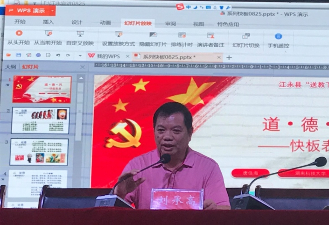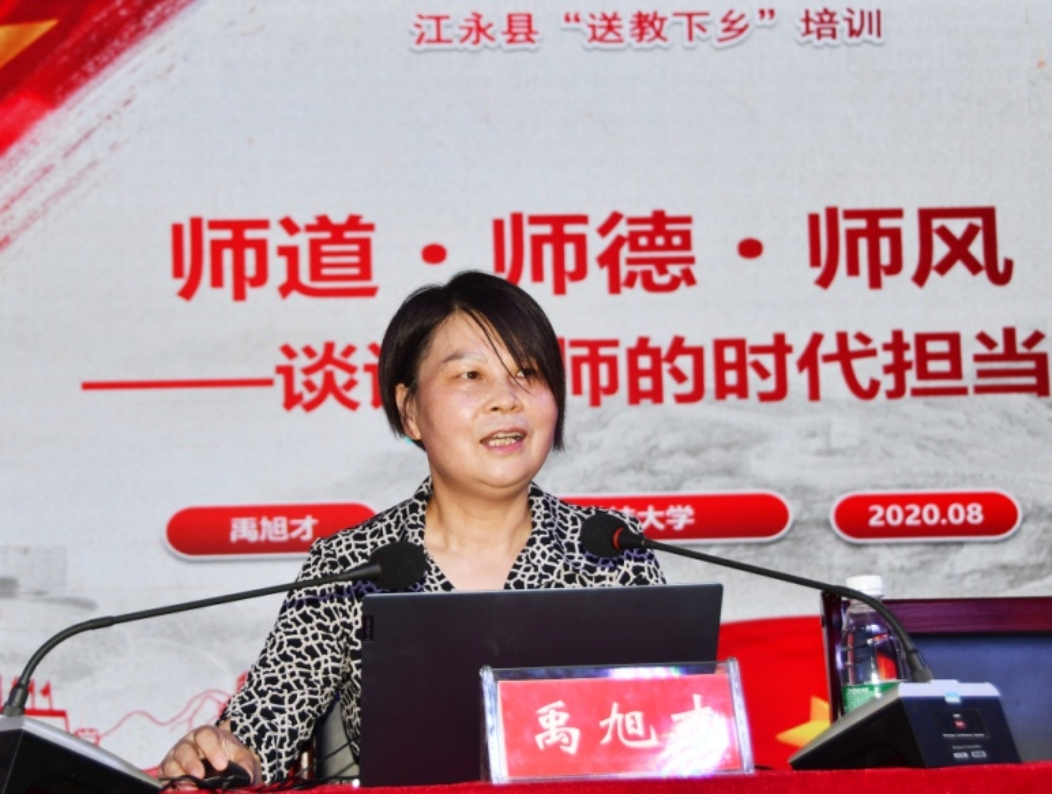 “师者,所以传道受业解惑也。新时代的教师,要以马克思主义领航定向,以社会主义核心价值观铸魂育人,以中国精神提神振气——这也是我对当今师道、师德、师风的理解。”2020年下半年新学期即将开学之际,江永大地骄阳似火,第一小学报告厅里热情洋溢,湖南科大思政课教师、博士生导师、智绘青春宣讲团团长禹旭才教授与江永县教师国培班500多名学员分享着新“师说”。这是湖南科技大学与江永县教育局“打开门办思政课”,协同推进大中小学思政课一体化建设,秉着“育人先育己”的原则,给教师们上的“开学第一课”。