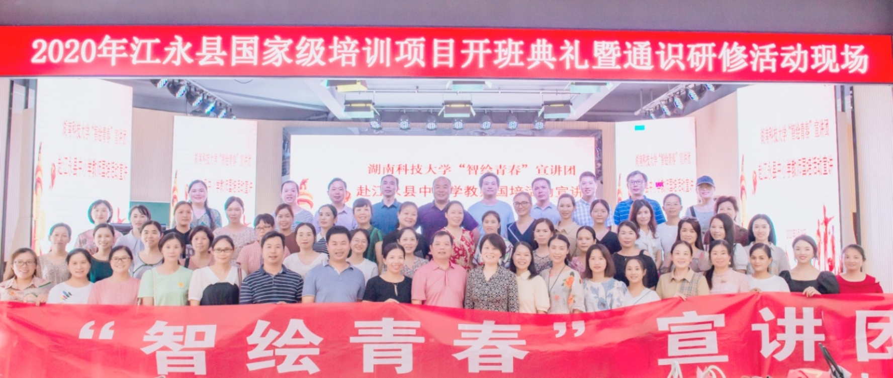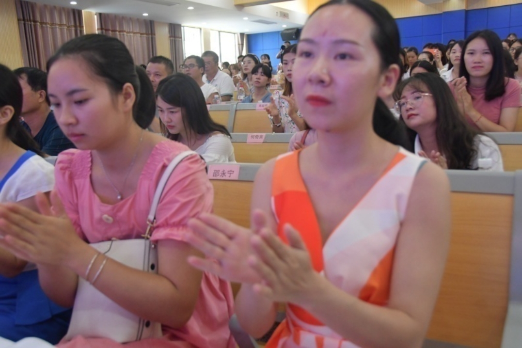 新时代的教师如何担负起立德树人的时代使命?究竟应该以怎样的师道传正道?以怎样的师德育人德?以怎样的师风扬新风呢?育人者究竟应该如何先育己?面对这一新时代教师队伍建设新课题,江永县近年来结合“国培计划”连续开展“送教下乡”项目培训,并将师德师风建设作为首要内容,邀请高校有关专家莅临宣讲,构建了与高校协同联动的培训机制。今年暑假临近尾声之际,湖南科技大学思政课教师、智绘青春宣讲团成员禹旭才、梁长平、彭立春、唐佳海等一行四人,应邀作“师道·师德·师风”主题宣讲,拉开了国培班线下授课的序幕。此次宣讲分两个会场,宣讲团以专题宣讲和辅助报告,理论阐释、快板讲述、现场互动等方式,为学员们呈现了一堂堂生动活泼的宣讲课,赢得了阵阵热烈掌声。江永县政府副县长何娟、教育局局长李世忠和副局长卢志平、刘承高等领导出席参加开班典礼和宣讲活动。