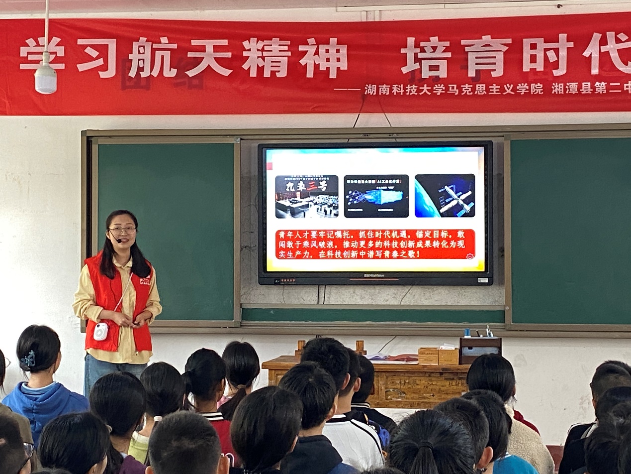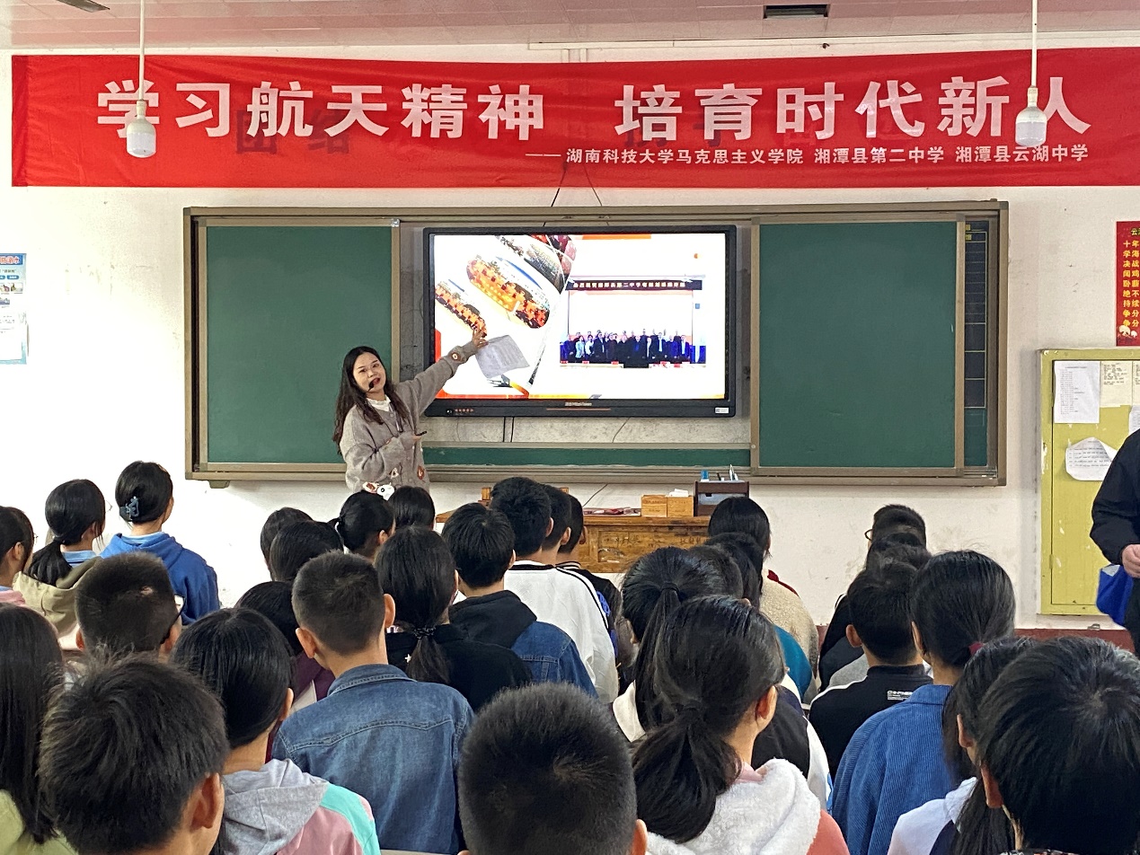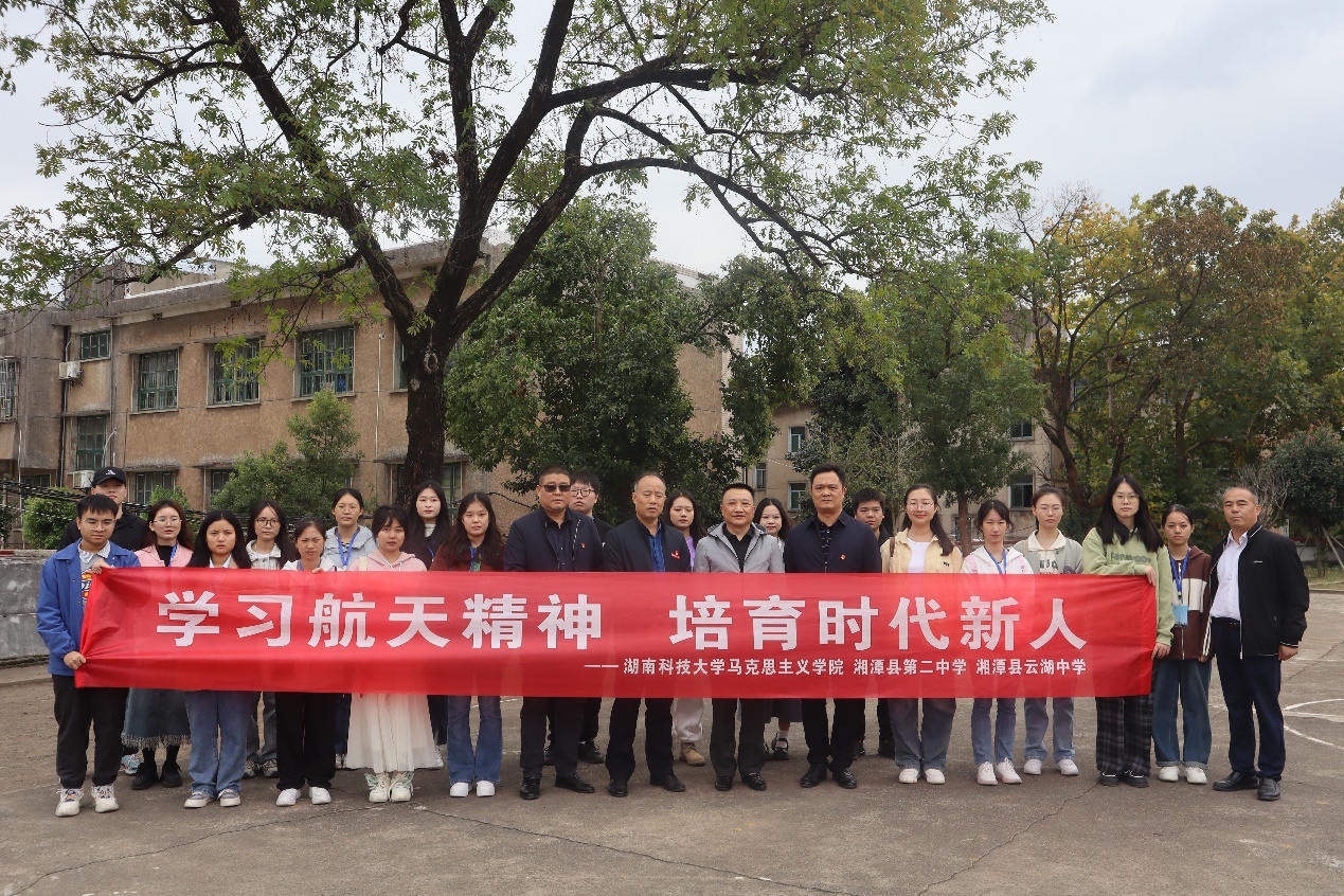 10月20日,永利yl23411“薪火湘传”宣讲团与湘潭县二中政治组教师走进航天员汤洪波母校——湘潭县云湖桥镇云湖中学联合开展“大中小学思政课一体化建设”系列宣讲第1场暨“薪火湘传”宣讲基地授牌仪式。本场宣讲的主题是“学习航天精神,培育时代新人”。