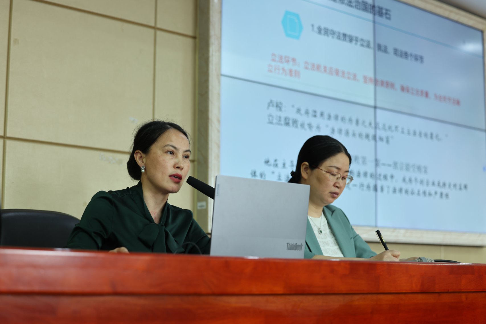 吴晓蓉以“全民守法:依法治国的基石及推进路径”为主题,深刻阐述了全民守法的内涵、意义及推进路径。首先,吴晓蓉以守法主体演进的时间为序,引用相关法律文献,讲述守法主体的形成和发展过程,同时结合与守法相关的案例,深入浅出地阐明了“何为守”、“何为法”。接着,她通过引用名人话语着重指出,全民守法不仅贯穿于立法、执法、司法各个环节,而且是将“纸上的法律”变为“行动中的法律”的关键环节,有利于降低执法与司法成本,增强法律的权威和公信力。最后,吴晓蓉循循善诱,结合国家领导人的讲话和社会热点事件,讲述全民守法的推进路径:一要“知法”,加强法治教育与普法宣传教育;二是要“信法”,科学立法、严格执法与公正司法;三要“畏法”,建立健全奖惩并举的利益机制。