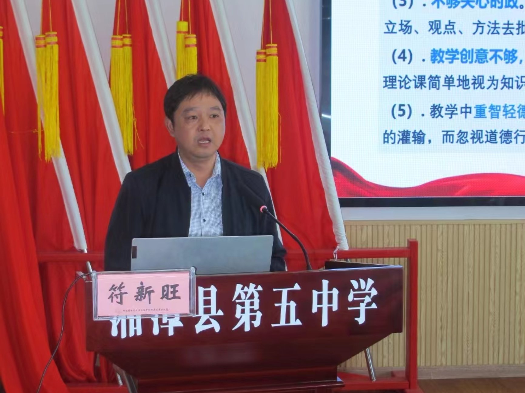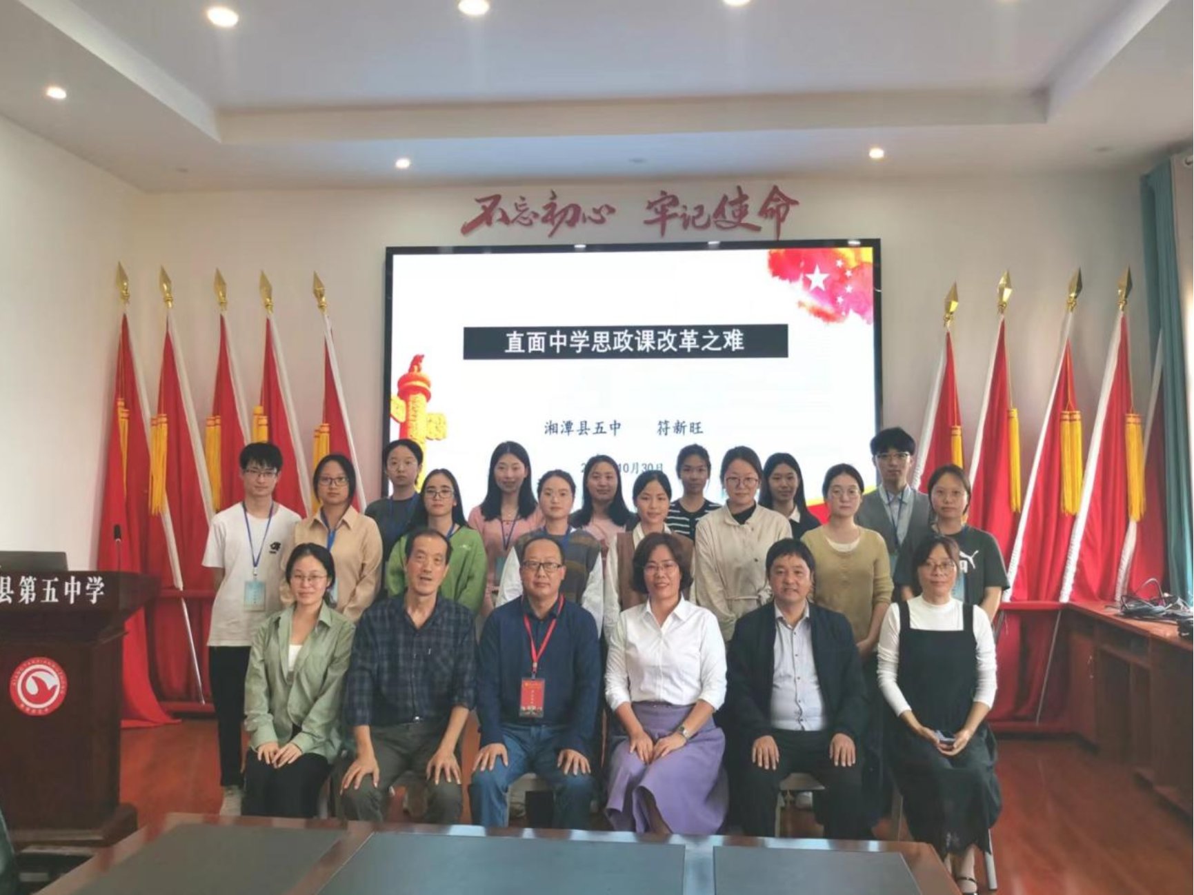 习近平总书记指出,改革创新是时代精神,青少年是最活跃的群体,思政课建设要向改革创新要活力。为提高思政课老师的创新能力,发挥思政课老师的改革精神,10月30日下午,湘潭县第五中学政治教研组组长符新旺老师作了“直面中学思政课改革之难”的专题讲座。讲座由湘潭县第五中学梁迎新校长主持,思政课老师及湖南科大永利yl23411实习队全体成员参加了本次讲座。这也是永利yl23411“思政大讲堂”第14期暨“大中小学思政课一体化建设”系列讲座第3讲。