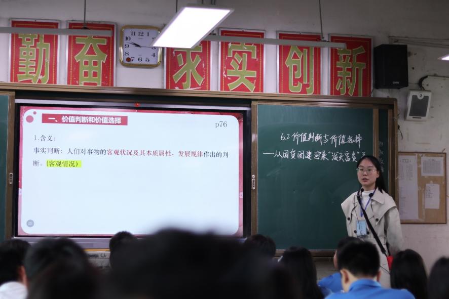 我院20级思政四班实习生符芊媛执教高二《价值判断与价值选择》一课,符芊媛同学将“国货崛起”作为切入口,以“国货崛起之因”“国货崛起之法”“国货崛起之思”作为议题,通过小组讨论、课堂演讲等形式,培养学生独立思考能力和课堂教学效果。其基本功扎实、亲和力强,发展潜力深厚,体现了我院优秀实习生的亮丽风采。