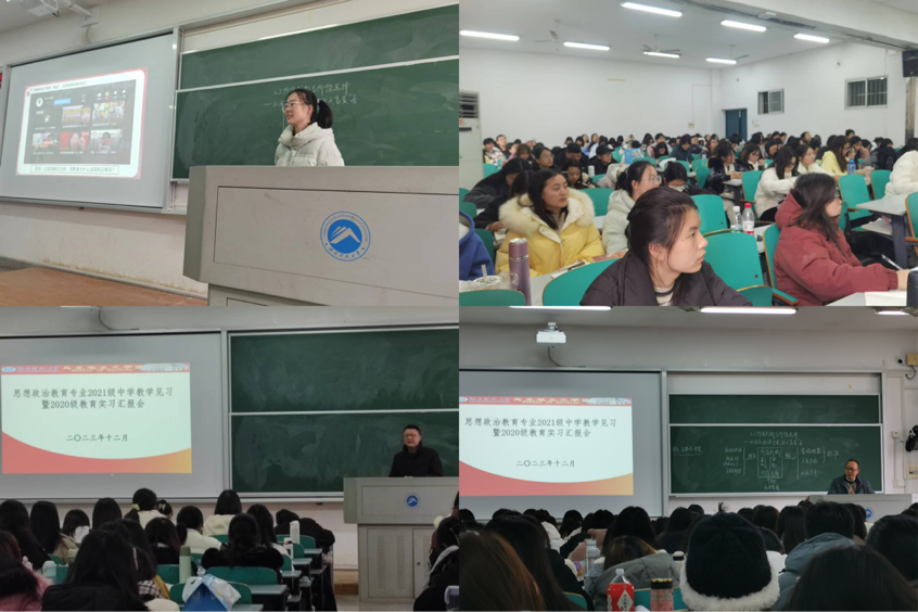为深入落实师范生人才培养方案,增强思政专业学生见习、实习效果,展示学生教育实习成果,12月3日,我院20级思政专业教育实习汇报暨21级思政专业第二场中学教学见习活动在九教207教室顺利召开。李育军、贺昭平、吕开武、凌应生、杨盛军等学院教师作为评课指导老师参与此次活动,魏湘、田嘉絮、符芊媛、童彤、赫冰倩、鲁梓玮等6名2020级思政专业同学作为实习代表进行汇报,2021级思政专业全体学生到场参会。