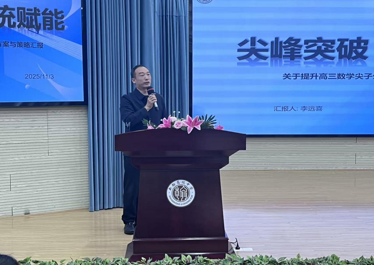 最后,李远喜老师以《尖峰突破,系统赋能》为主题,结合高三联考成绩,系统分析了高三培优工作。他表示,高三团队深入落实“心态建设、专项辅导”策略,践行“以学生为中心,以数据为依据”的理念,通过“思维可视化、资源评估”的实践,制定个性化提升方案,致力于激发尖子生的学习潜能,实现高三备考质量的全面提升。
