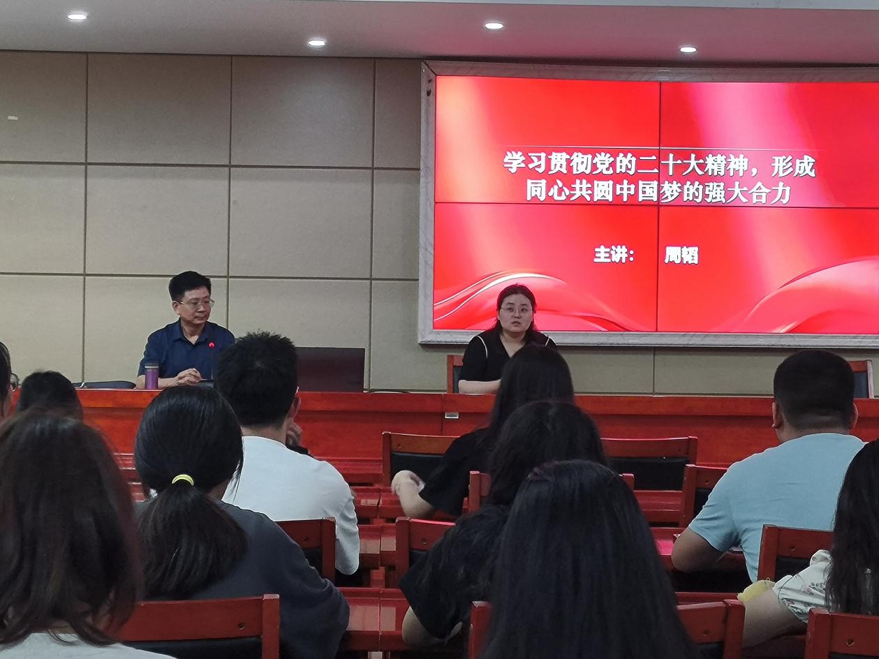 5月27日下午,永利yl23411“思政大讲堂”第9期在立言楼5-1报告厅顺利开展,周韬副教授以“学习贯彻党的二十大精神,形成同心共圆中国梦的强大合力”为题,为我院21级思想政治教育专业本科生带来了一场精彩的学术盛宴。此次讲座由毛泽东思想和中国特色社会主义理论体系概论教研部主任管桂翠副教授主持。