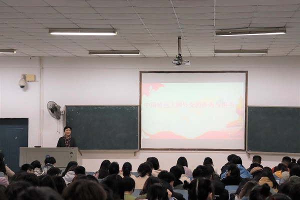 12月16日晚,副校长李琳在第八教学楼2-3教室进行题为“中国特色大国外交的作为与担当”的“形势与政策”思政课。17级建筑与艺术学院建筑学专业、园林专业、工业设计专业以及城乡规划专业学生到场聆听。
