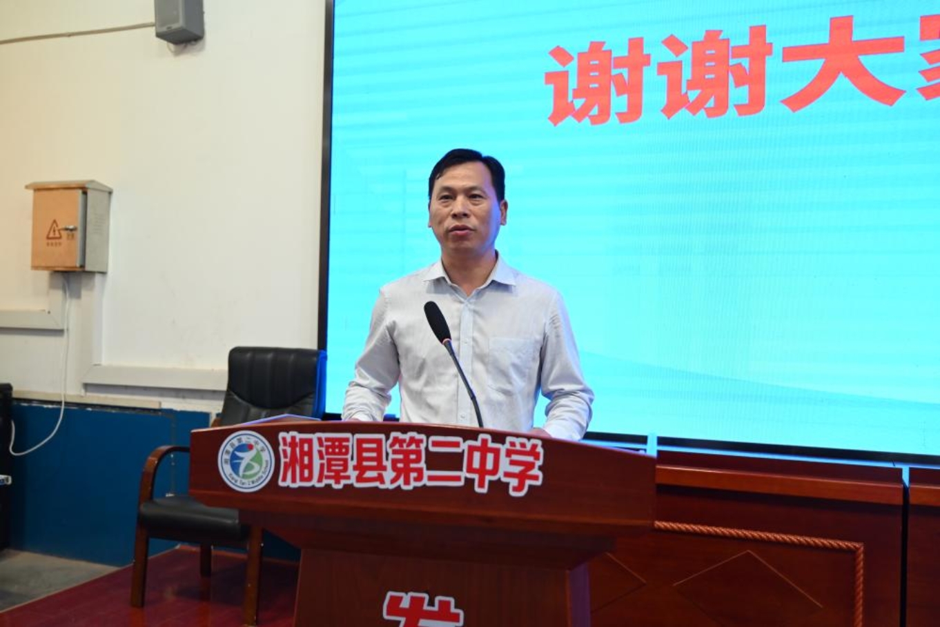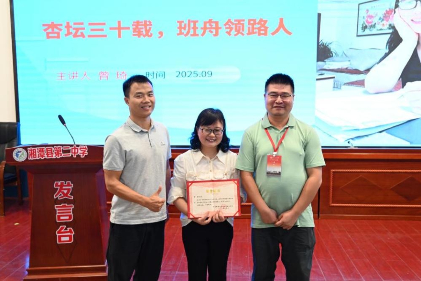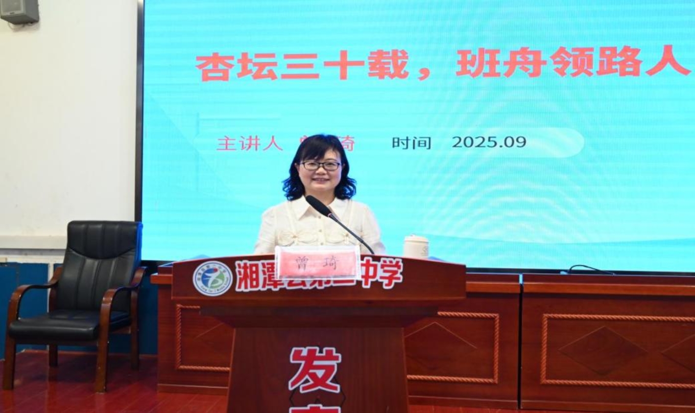 9月28日下午,“思政大讲堂”第51期在湘潭县第二中学大会议室举行。本次讲座以“杏坛三十载,班舟领路人”为主题,由湘潭市优秀班主任、湘潭市最可爱乡村教师曾琦老师主讲。县二中党总支书记文海石、政教处主任李东红、青年教师代表、2022级思想政治教育专业县二中实习队带队老师龚超博士和全体成员参加了此次讲座,讲座由湖南省特级教师、县二中思政教研组组长张炳华老师主持。