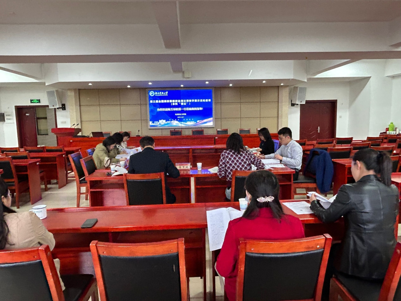 为深化课堂教学改革,不断优化教学内容和教学方式,进一步提升教师课堂教学水平,打造“金课”,本学期(9.15-11.16)“思想道德与法治”教研部广泛开展了全体任课教师课堂教学磨课活动,特别是针对本系部周文斌老师备战第三届全国高校思想政治理论课教学展示活动,学院邀请了长沙理工大学陈万球教授、湖南交通职业技术学院褚凤教授等深入教研部进行教学指导。