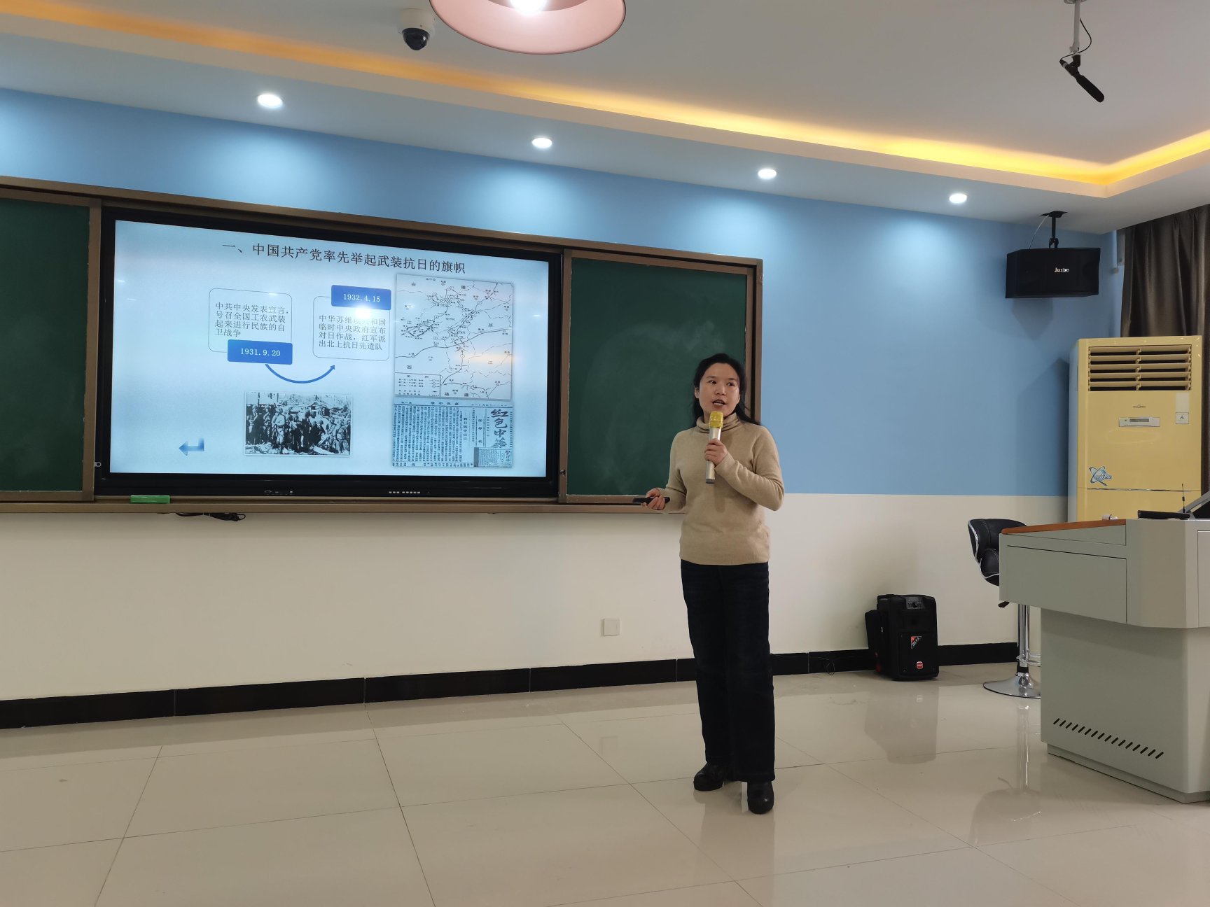 我院“纲要”教研部丁桂馨博士以“中华民族的抗日战争”为题进行了示范教学展示,从“抗日民族统一战线的形成”、“敌后战场的开辟和发展”、“实行全面的全民族抗战的路线”、“国共两党在抗战中的表现对比”等方面系统讲述了“中国共产党是抗日战争的中流砥柱”,获得了与会教师的一致好评。米华教授对湘潭大学教师的示范课进行了精彩点评,强调“纲要”课教学要有理论的高度、思想的深度、情感的温度。随后,与会教师分组进行了专题研讨和经验分享,各位老师各抒己见,畅所欲言。我院参会老师梁长平、钟声等认为:“高校联动、集体备课的形式非常好,不仅加深了我们对兄弟院校在‘纲要’课程教学改革理念、思路与特色上的认知,更加让我们看到了自己与他们的差距,我们要取长补短,积极借鉴兄弟院校的教学改革经验,进一步充实教学内容、开阔教学视野、拓展教学手段,提高教学效果,为培养社会主义合格建设者和可靠接班人贡献力量。我们要力促高校联动的集体备课模式成为常态,越办越好!”