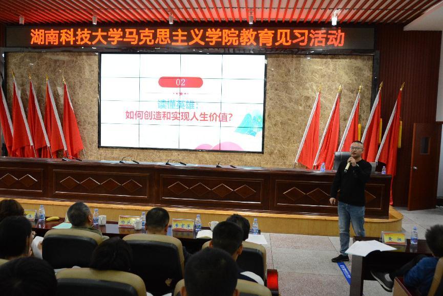 见习伊始,云龙中学与科大马院师生一起观看了《xin路—奋进中的云龙中学》的宣传片。宣传片以“心路”“辛路”“新路”三条xin路介绍了云龙中学二十五载的发展历程。14时10分,云龙中学书记梁迎新致辞,对母校师生的到来表示热烈真挚的欢迎,同时,从专业的角度对此次见习活动作出了要求与指导,为活动的顺利开展和帮助学生有效理解教学理论与实践之间的紧密联系奠定了基石。接着,云龙中学高中思想政治高级教师、高二年级组组长罗正炎老师为师生们展示了“价值的创造和实现”的课堂教学。罗老师采用“一案到底”的教学模式,以杂交水稻之父袁隆平的人生事迹为主线,展开走近英雄、读懂英雄、崇尚英雄三个议题,引导学生探讨人生价值,鼓励学生成为时代新人。罗老师教学准备充分,教学思路清晰,教学理念先进,教学语言丰富,教学方法适当,教学效果显著;授课对象云龙中学2301班学生在课堂当中积极思考,认真探究,讨论热烈,踊跃答问,合力为2022级思想政治教育专业的见习同学呈现了一堂精彩的高中思想政治课。紧接着,湖南省特级教师,湘潭市、县初中道德与法治学科带头人,云龙中学副校长张宇以《让雷锋精神在新时代绽放更加璀璨的光芒》这一教学设计为例,探讨了“大思政”视域下的中学思政课教学策略。张老师在讲座中,介绍了《让雷锋精神在新时代绽放更加璀璨的光芒》示范课的相关思考。她认为,必须要领悟“大”之要义、把牢“思政”之真义、锻造“课”之本义;提出了“大思政”视域下的思政课教学策略:即立足“大时代”读懂“大背景”、展现“大视野”统筹“大课堂”、融合“大队伍”整合“大资源”;最后介绍了云龙中学如何行动的三个方面:一是坚持固本强基,锻造“大队伍”,二是凝聚育人合力,展现“大格局”,三是聚焦铸魂育人,锤炼“大课堂”。张老师的讲座,展示了云龙中学学习雷锋精神系列活动的开展情况与成果,并分享了云龙中学如何将其积极融入“大思政”课背景下的思政课教学策略和经验,同时就如何更好地推进中学“大思政”课建设与在座的师生们展开热烈的探讨,思想的交流与理念的碰撞,使在座的师生们受益匪浅。