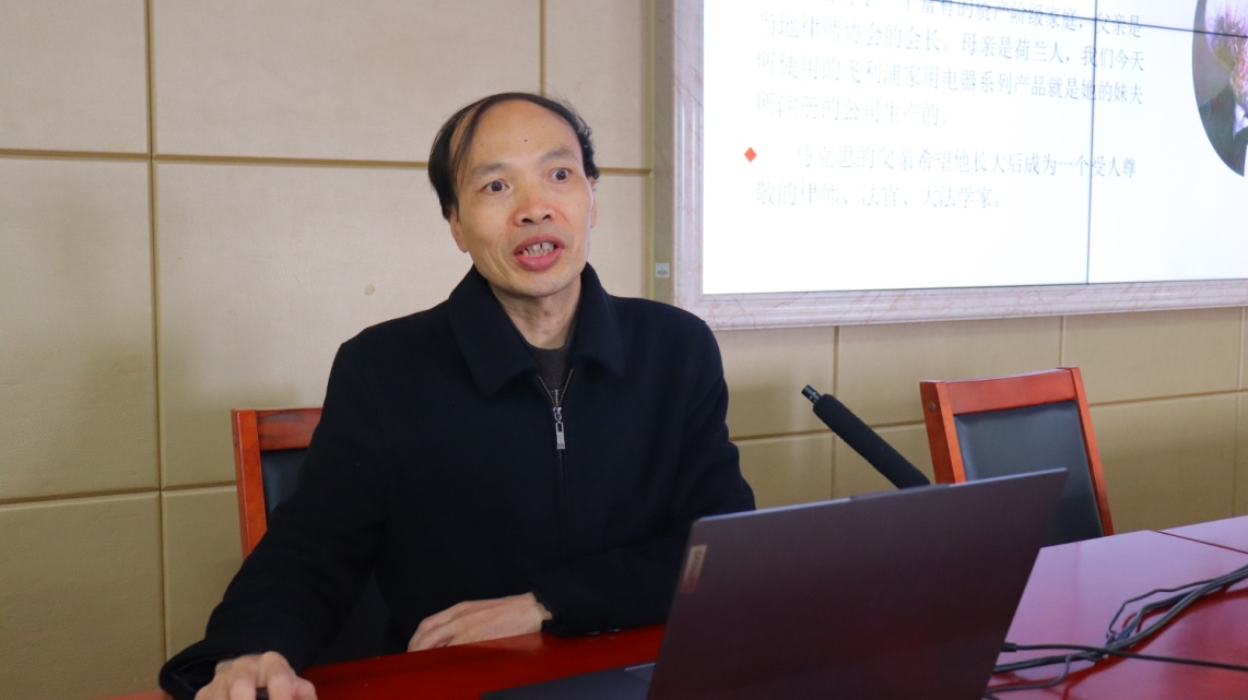 讲座伊始,朱教授由德国经济文化的良好发展态势出发,提出了德国何以成功的问题,进而指出德国人拥有辩证思维是其中最重要的原因之一。朱教授指出,马克思正是站在巨人的肩膀上,吸收了德国古典哲学、古希腊罗马哲学、文艺复兴时期哲学、法国复辟时期历史学家进步思想以及培根实验哲学等的思想成果,才得以创造性地建立了其新唯物主义哲学思想体系。