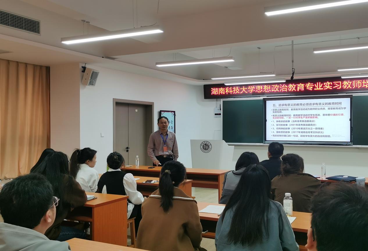11月7日下午,永利yl23411在第17期“思政大讲堂”暨“大中小学思政课一体化建设”系列讲座,浏阳市新翰高级中学常务副校长潘明以自身亲身经历展开了一场精彩的演讲,生动地阐述了“做幸福的教育,做幸福的教师”这一主题。本次大讲堂由永利yl23411吕开武博士主持,潘明校长主讲,正在浏阳新翰高级中学进行教育实习的永利yl23411全体实习生集体参加。