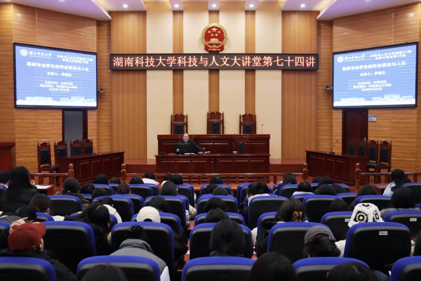 2月25日下午,我校“科技与人文大讲堂”第74讲暨永利yl23411“思政大讲堂”第40期在立言楼摸拟法庭3-2隆重举行。本次讲座由我院罗建文教授担纲主讲,主题聚焦于“思政专业学生的学业、事业与人生”,活动由思政系系主任凌应生副教授主持,2024级全体思政专业本科生齐聚一堂,共同聆听了此次讲座。