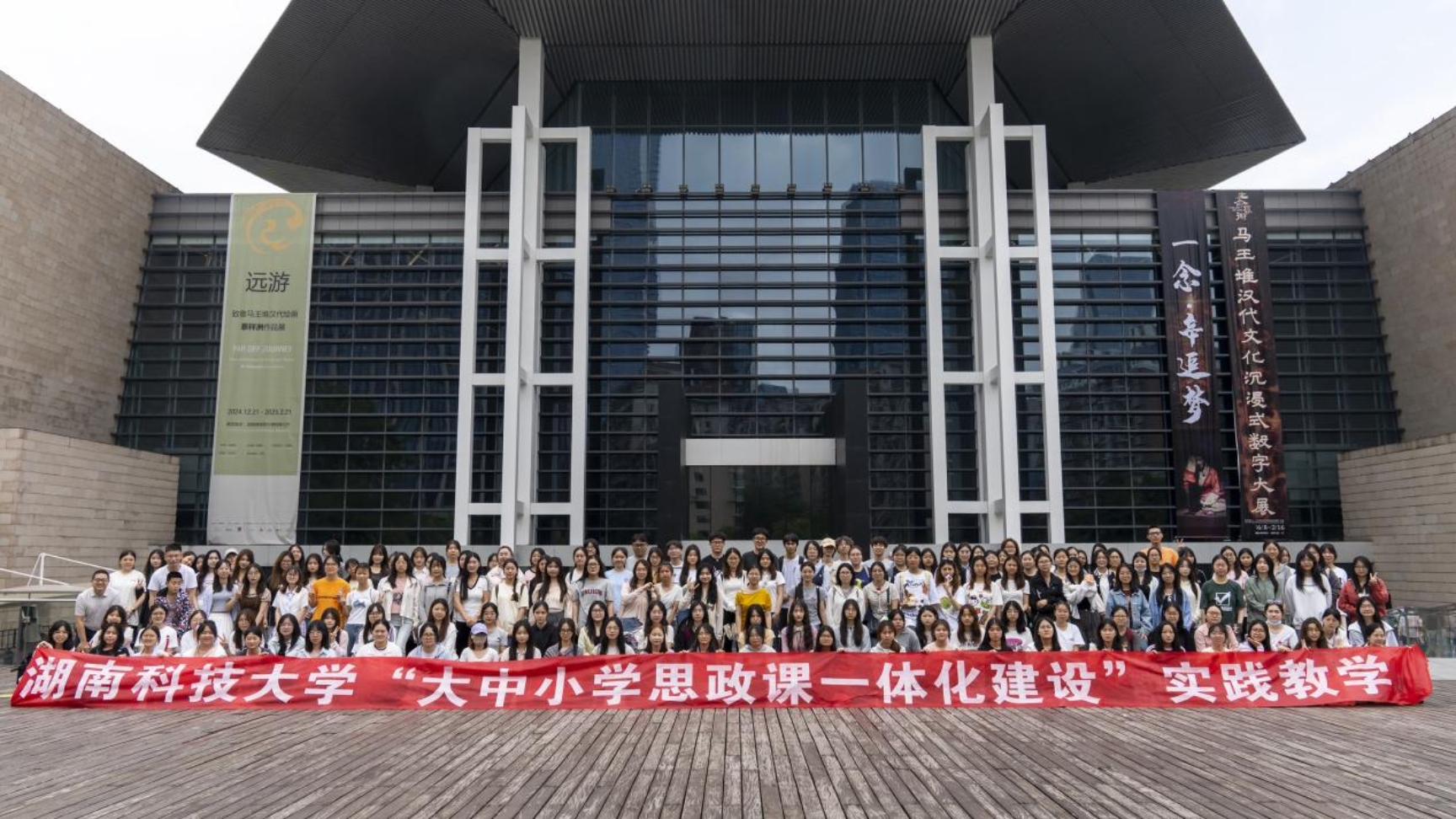 下午2点,全体师生到达湖南博物院开始参观。湖南博物院拥有由两大基本陈列、三大专题陈列、特别展览等构成的展览陈列区,馆藏逾18万件,其中,“长沙马王堆汉墓陈列”占地5243.8平方米,展出千余件珍贵文物,以故事叙事手法再现轪侯家生活画卷,展现了汉初的物质文明、精神文明及科技成就。师生们在此深入探索,对汉代生活、丧葬观念及湖湘精神有了更深刻的认识和感悟,近距离感受了悠久的湖南历史与独具魅力的湖湘文化。