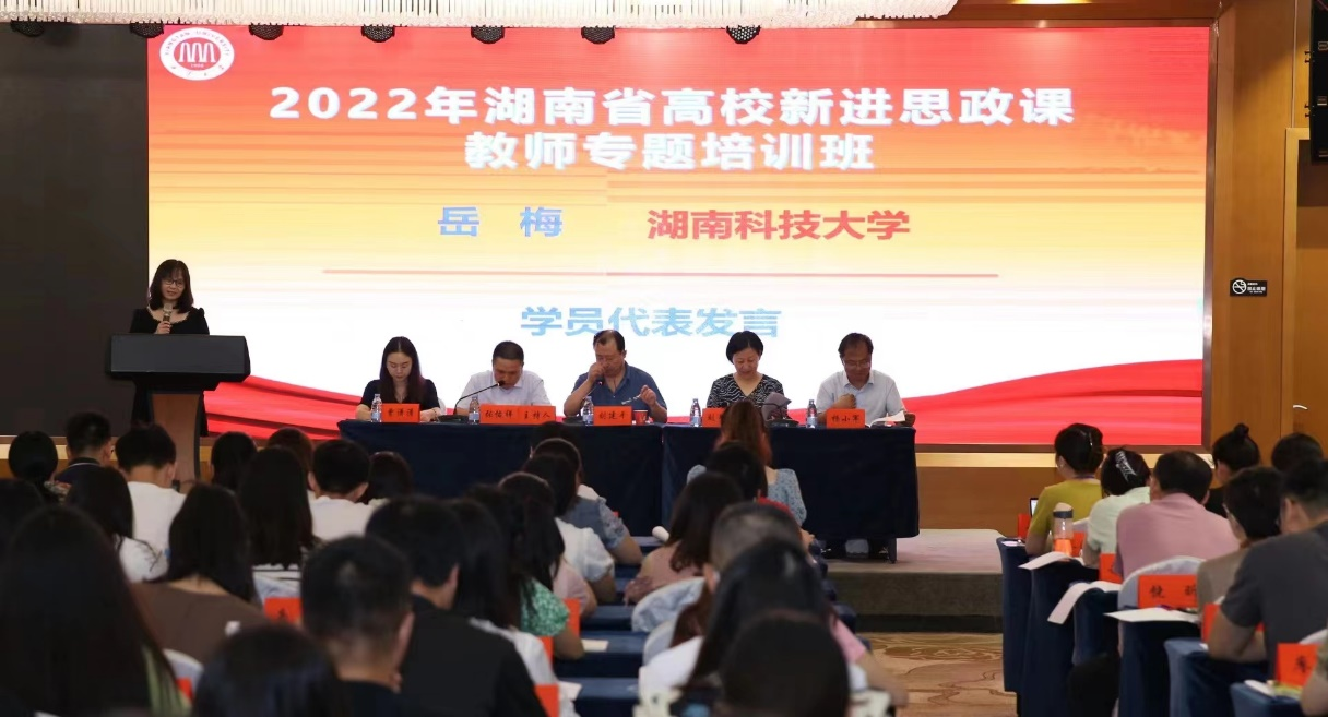 8月22日—24日,湖南省高校新进思政课教师专题培训班在湘潭大学举行。本次培训班由湖南省委教育工委、省教育厅主办,湘潭大学承办,来自全省91所高校的110名新入职思政课教师参加培训。我院岳梅博士参加了此次培训班。