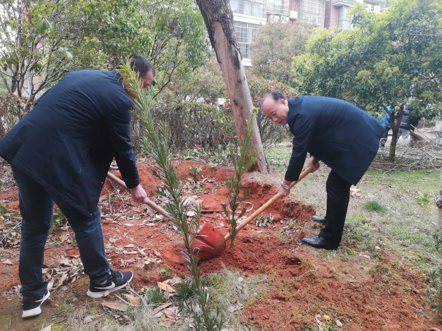 “党建红”引领“生态绿”,为深入践行绿色发展观,3月12日上午,恰逢第45个植树节来临之际,永利yl23411研究生第四党支部与科大社区一支部共建党支部开展公益植树活动。