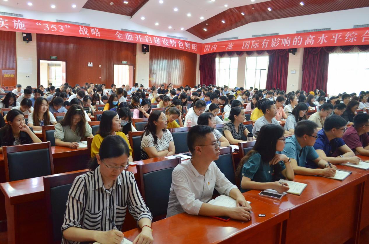 首先,唐书记就刚刚结束的学校第三次党代会及党代会精神进行了简答介绍和宣讲。他解释了“一个工作方针”、“一个发展战略”、“两个目标愿景”以及“四个科大”的内涵。“一个工作方针”是创新引领、对标一流、特色发展、重点突破。“一个发展战略”是指“353战略”,即在办学定位、人才培养、发展方式3个方向全面转型;在立德树人、科研创新、服务经济社会、文化建设、治理体系和治理能力现代化5个方面更加聚焦;在学校的核心竞争力和发展贡献力、广大师生员工的获得感和幸福感、学校的知名度和美誉度3个维度持续提升。“两个目标愿景”是湖南科技大学成为一流大学所提出的“十四五发展目标”和2035年远景目标。“四个科大”即创新科大、人文科大、奋进科大、幸福科大。