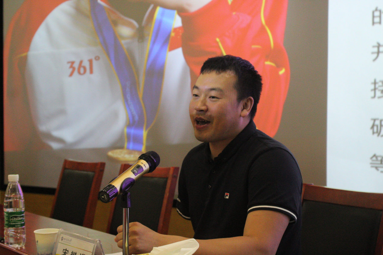 报告会上,杜剑平介绍了自己的奋斗史,他因一场疾病意外致残,却因此发掘了自己的游泳潜能。他不畏他人质疑的眼光,全身心投入体育锻炼,终取得成功,随后便致力于慈善事业,感恩社会、服务社会。杜剑平还表示希望奥运精神永远扎根在青年学生心中,并希望学生勇敢追梦。副校长廖湘岳在致辞中表示希望学生能够向榜样看齐,学习两位奥运冠军不畏艰辛,拼搏奋斗的精神。报告会最后一部分,宋懋璗则介绍了自己从被他人质疑,到重树信心,最后在残奥会中斩获金牌的人生历程,两位奥运冠军励志的演讲使在场师生无不为之感动,催人振奋。