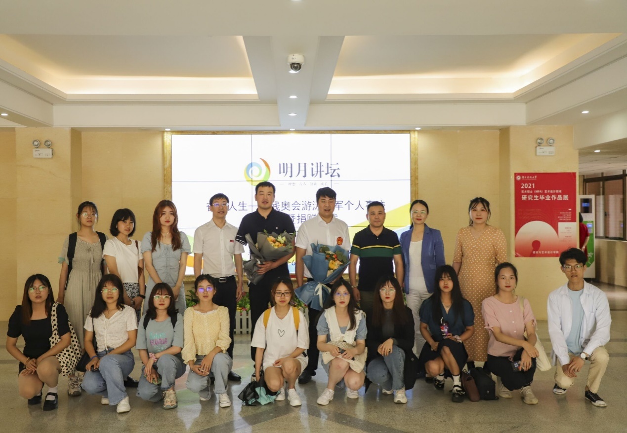 报告会结束,现场工作人员组织师生和两位冠军合影留念,奥运精神深深打动着在场每一个人,同学们纷纷表示,将会把两位冠军所传达的精神作为砥砺自己前行的不竭动力,同时将在生活中践行奥运精神,不断奋勇向前,为祖国的发展和未来献出自己的青春与力量。