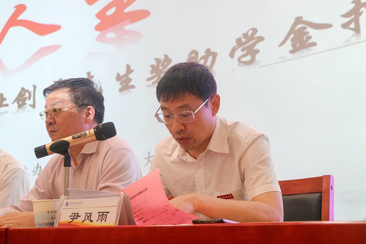报告会开始,主持人学工处处长尹风雨介绍了两位主讲人的事迹:杜剑平凭借永不言弃、奋勇争先的顽强意志,曾参加四届残奥会,共获奖牌16块,荣膺“九金王”的尊称,独创的“剑平式”泳姿更是震惊世界。不仅如此,他还经常走进高校,励志演讲200余场,将奥运精神传播到千千万万青年的心中。宋懋璗也在各大赛事中获得斐然战绩,取得了一系列荣誉,在体坛留下了他辉煌的战绩。除此之外,他还曾荣获最美杭州人、劳动模范等多项荣誉称号,一心一意为残疾人谋福祉。接着,杜剑平与仪式负责人进行了“杜剑平奖学金”捐赠仪式,对我校建设表示鼎力支持。