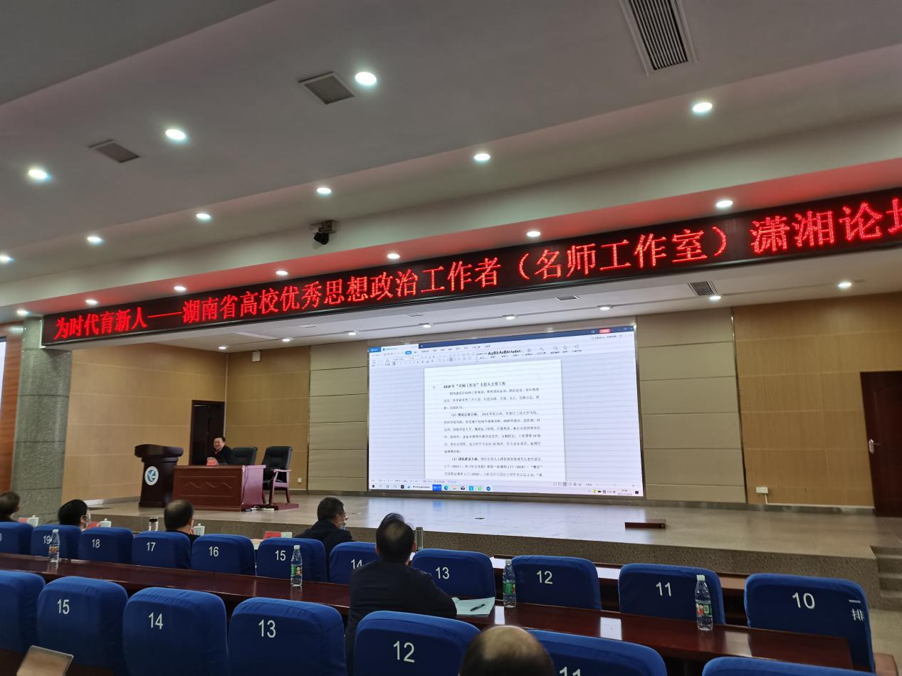 10月22-25日,湖南省首场“为时代育新人”高校优秀思想政治工作者(名师工作室)潇湘论坛在永州举行。本次论坛活动由中共湖南省委组织部、中共湖南省委宣传部、中共湖南省委教育工委(湖南省教育厅)主办,湖南科技学院承办,湖南省高校思想政治教育研究会协办,教育部思想政治工作司副司长李景升寄语论坛,湖南省委宣传部副部长胡代松、省委教育工委委员、省教育厅党组成员罗桂香等参加开幕式并讲话。北京师范大学思想政治工作研究院院长冯刚、我校党委书记唐亚阳作主题报告。我院名师工作室主持人吴怀友、吴毅君、颜柯分别做了发言,最美思政课教师梁长平参加了会议。