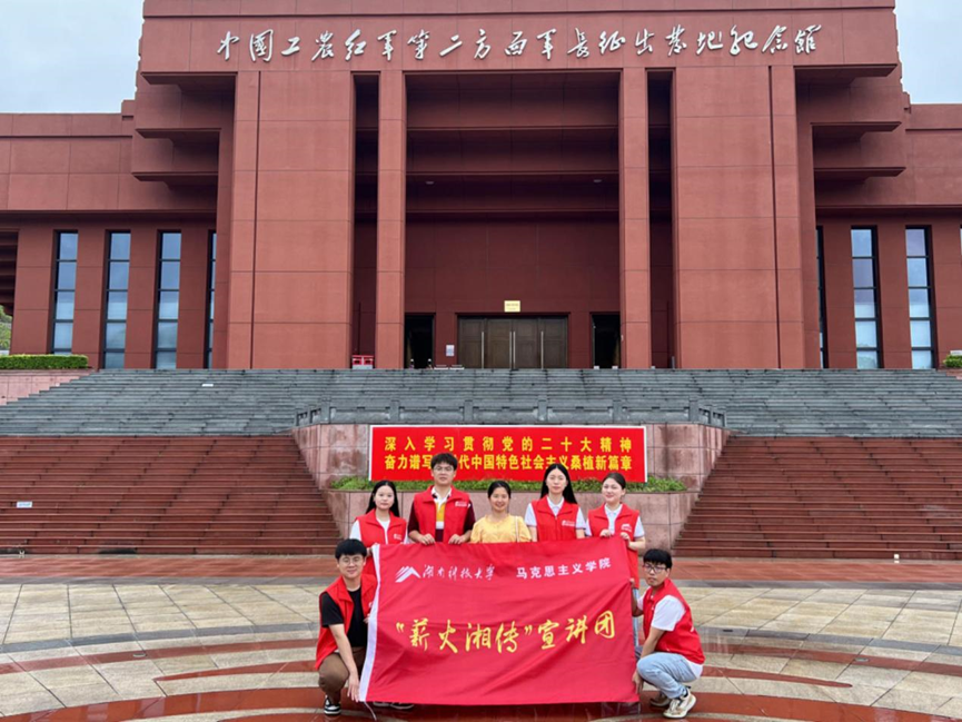 7月4日至7月10日,“薪火湘传”宣讲团暑期科技服务团队赴桑植县开展活动。实践团队通过乡村振兴调研、开展直播带货、进行理论宣传等方式直击乡村振兴问题痛点,创新乡村振兴途径;通过参观贺龙纪念馆、拜访革命老兵、拍摄红色宣传短视频等方式打通红色文化传播堵点,扩大红色文化传播面,助力红色文化代代相传。7月15日至7月20日,“薪火湘传”宣讲团“芙蓉学子”暨暑期“三下乡”团队来到邵阳市城步县蓬瀛村,依据当地需求与特色,通过“宣讲”、“调研”、“直播”等方式进行助学、助农社会实践活动,并拍摄“情系苗乡,醉美蓬瀛”公益计划项目纪录片,以青春建功的实际行动为乡村振兴贡献力量。7月30日至8月1日, “薪火相传”宣讲团走进郴州市汝城县沙洲瑶族村围绕《“半条被子”传承革命薪火,红色旅游助力乡村振兴》这一主题,实地考察并走访各行各业的人物,从“红色旅游”、“绿色产业”、“古色乡风”三个方面探索瑶族村乡村振兴的先行经验,真切体会革命的艰辛和党民的鱼水情深。