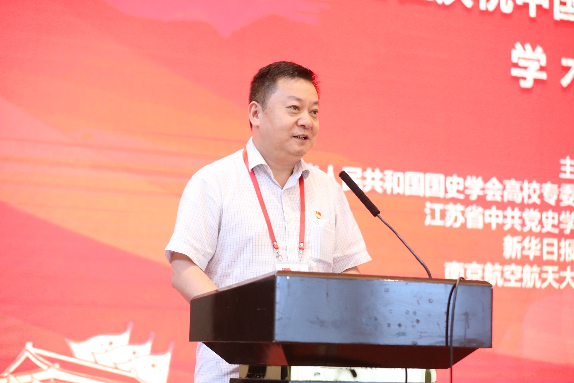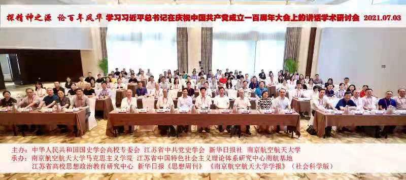 7月3日,由中华人民共和国国史学会高校专委会、江苏省中共党史学会、新华日报社、南京航空航天大学主办,南京航空航天大学永利yl23411、江苏省中国特色社会主义理论体系研究中心南航基地、江苏省高校思想政治教育研究中心、新华日报《思想周刊》等承办的“探精神之源 论百年风华”——学习习近平总书记在庆祝中国共产党成立一百周年大会上的讲话学术研讨会在南京召开。来自中华人民共和国国史学会高校专委会、中共党史党建及马克思主义理论学科、有关部门和媒体等领导、专家、学者与南航师生共一百余人济济一堂,围绕习近平总书记“七一”重要讲话的主要内容、创新之处、话语特点、重大意义等展开了深入研讨。