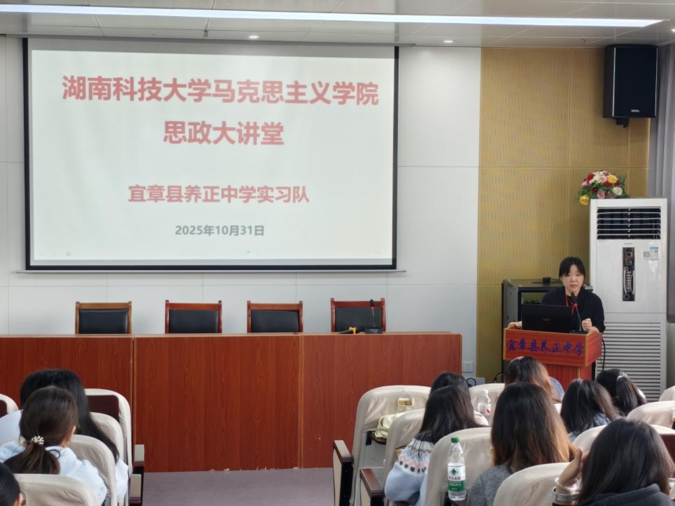 为助力我院思想政治教育专业实习生深化专业认知、锤炼教学技能,解决实习阶段面临的理论实践转化难题,明晰未来思政课教师的职业发展路径,2025年10月31日,永利yl23411举办了思政大讲堂“思政课教师专业成长”专题讲座。本次讲座特邀宜章县养正中学政治教研组骨干教师范雪姣、黄柳杏担任主讲嘉宾。宜章县养正中学校长胡耀平,我院2022级思想政治教育专业养正实习队带队教师罗建文教授、关洁博士,以及实习队全体成员共同参与了此次活动。
