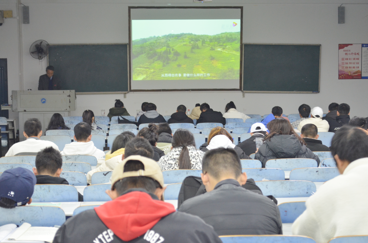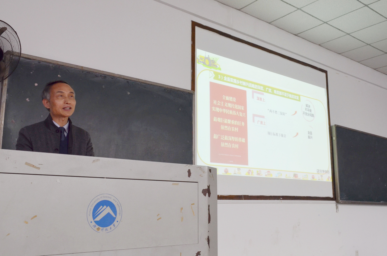 12月16日下午七八节课,我校副校长施式亮在八教2-3教室为我校本科生讲了一堂以“谱写乡村全面振兴新篇章”为主题的形势与政策专题思政课。