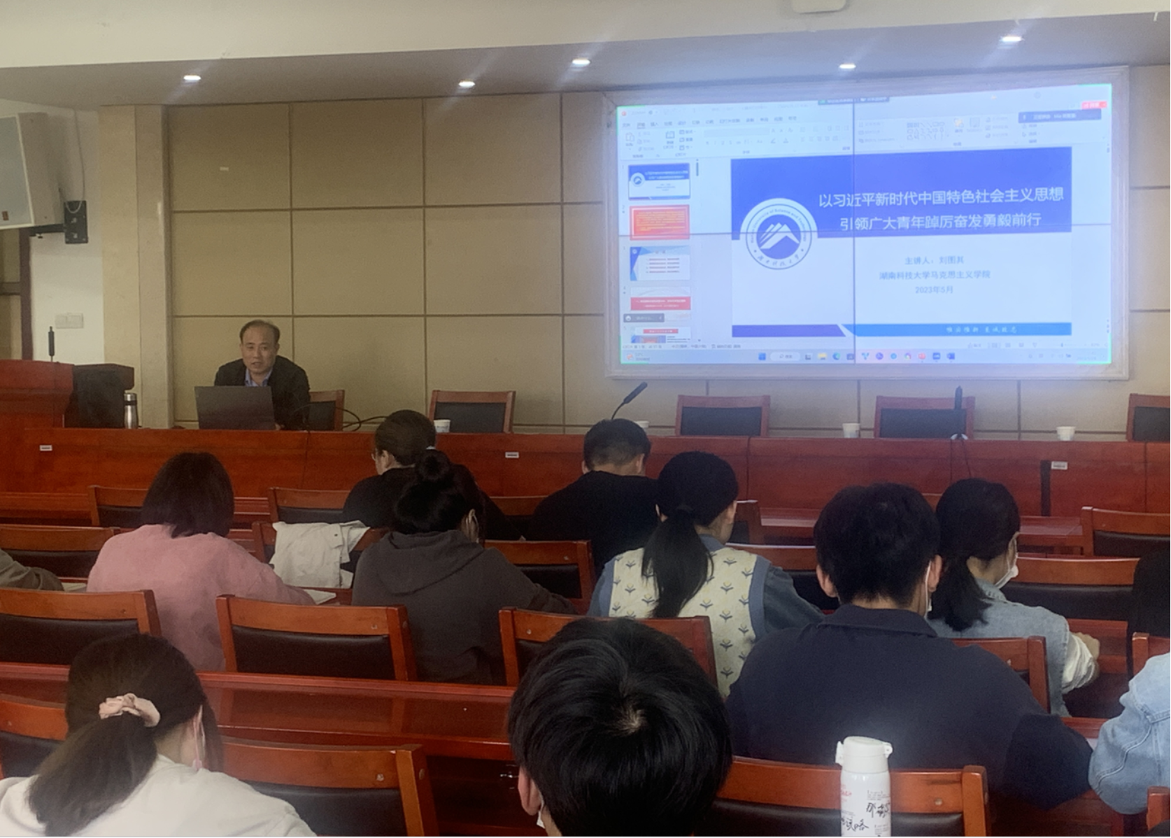 5月24日下午,院党委委员、副书记刘图其在立言楼A5-1报告厅以“以习近平新时代中国特色社会主义思想引领广大青年踔厉奋发勇毅前行”为主题讲授主题教育暨永利yl234112023届毕业党员党课。全体毕业生党员、研究生第四党支部党员与会。会议由管桂翠老师主持。
