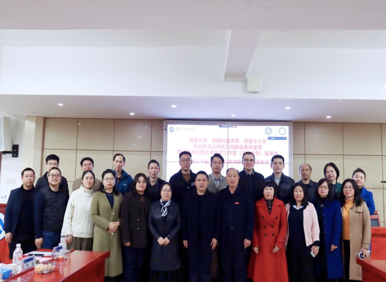 为深入学习贯彻党的二十届三中全会精神,使思政课建设与党的创新理论武装同步推进,湘潭大学、湖南科技大学、塔里木大学永利yl23411三校联合集体备课暨全国高校思政课名师工作室(湘潭大学)备课会于2024年11月30日在湖南科技大学立言楼举行,此次备课会也是全国高校思政课名师工作室(湘潭大学李雅兴)、湖南省高校思想政治工作名师工作室(湖南科技大学刘正妙)、湖南省普通高校思政课金课《习近平新时代中国特色社会主义思想概论》(湖南科技大学韩平)课程组的一次集体教研活动。永利yl23411党委副书记刘图其代表主办单位致辞,强调了学习贯彻党的二十届三中全会精神的重要性,并提出了通过集体备课提升思政课教学质量的有效途径。湘潭大学永利yl23411副院长杨小军、永利yl23411副院长黄爱英、塔里木大学永利yl23411朱瑞海教授分别介绍了三校在思政课建设包括课程建设、教学改革、教学竞赛、实践教学等方面的成果和经验。